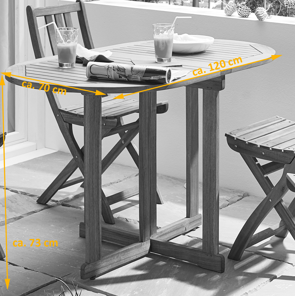 - 1x Klapptisch Pedro und 2x Stuhl Bloom