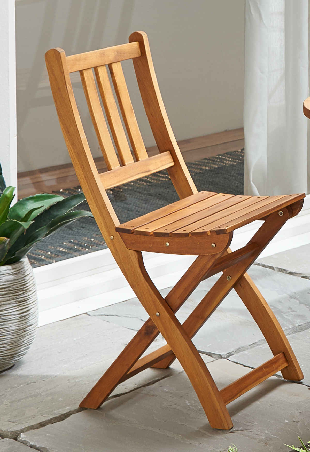 Zu dem Tisch PEDRO erhalten Sie zwei BLOOM Gartenstühle. Diese punkten nicht nur durch Ihre ergonomisch geformte Sitz- und Rückenfläche, sondern auch durch Ihre natürliche Optik. Die Stühle sind sehr komfortabel und durch das massive Holz auch robust. In der schlechten Jahreszeit können diese ebenfalls zusammengeklappt und gelagert werden.