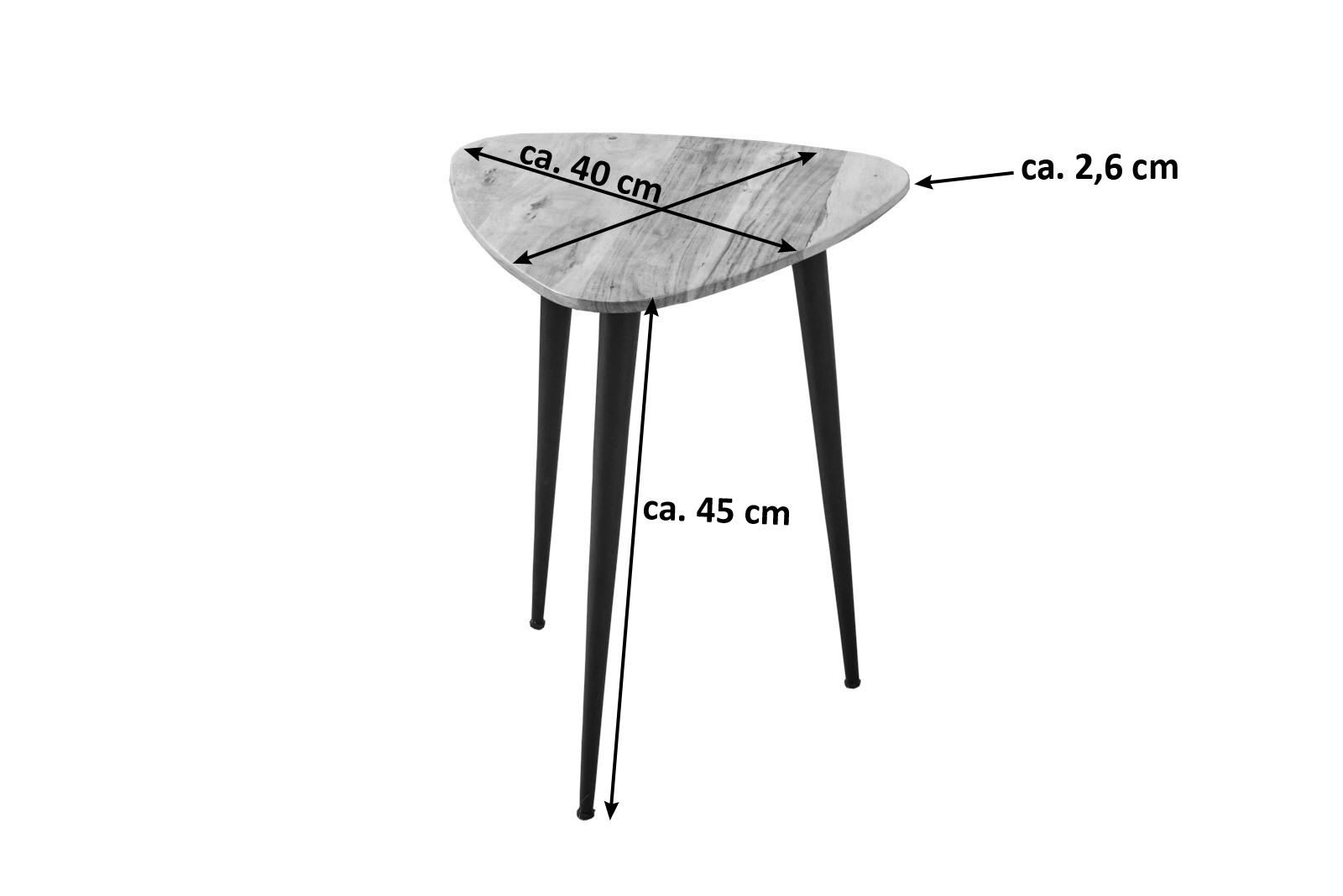 Durchmesser der Tischbeine: ca. 3,0 cm (oben) & 1,5 cm (unten)