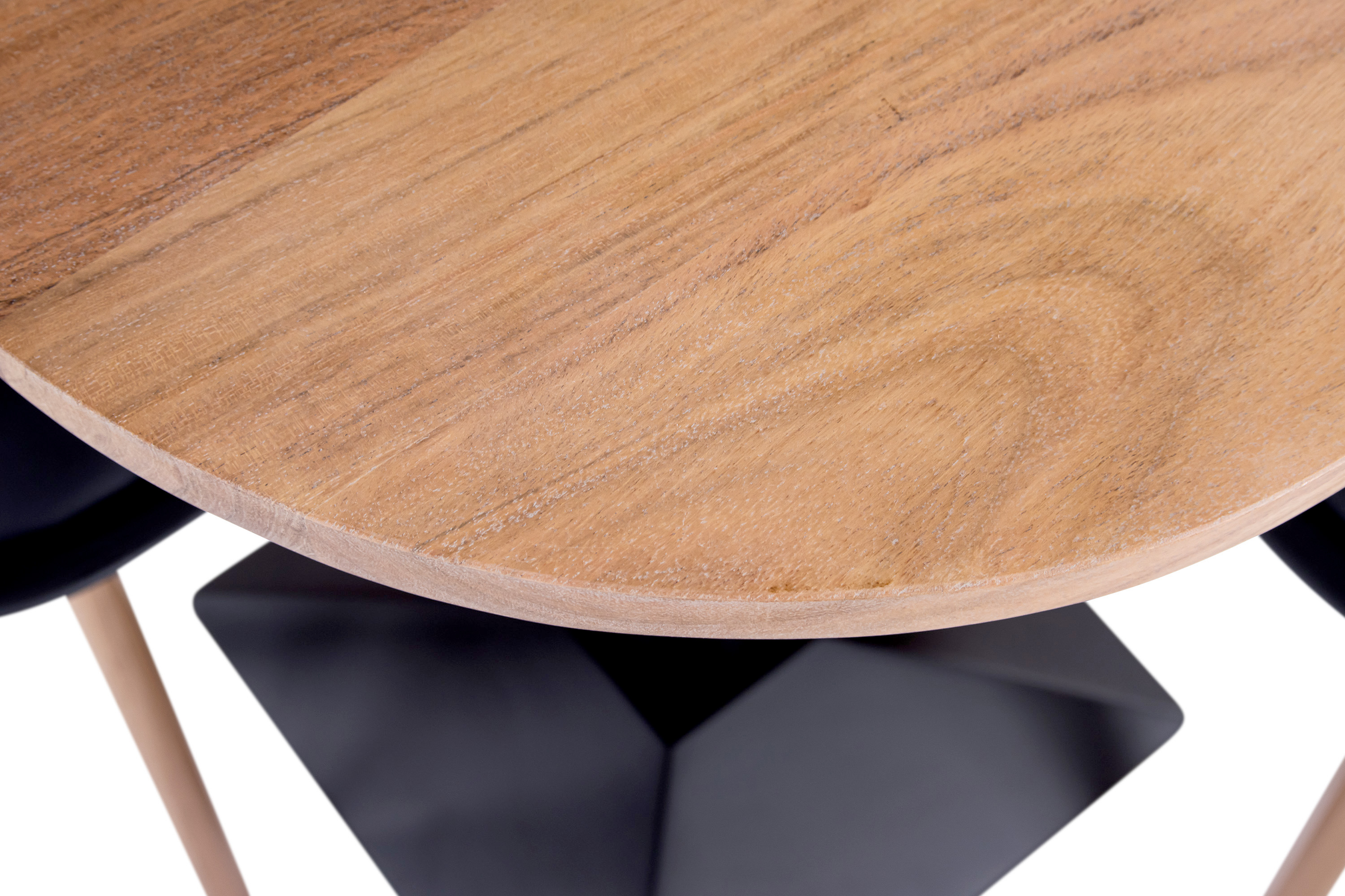 Die Tischplatte besteht aus massivem Akazienholz, das für seine Härte, Langlebigkeit und unverwechselbare Maserung geschätzt wird. Dank der feinen Lackierung kommt die natürliche Farbgebung besonders schön zur Geltung – jedes Stück ein wahres Unikat mit warmer Ausstrahlung.