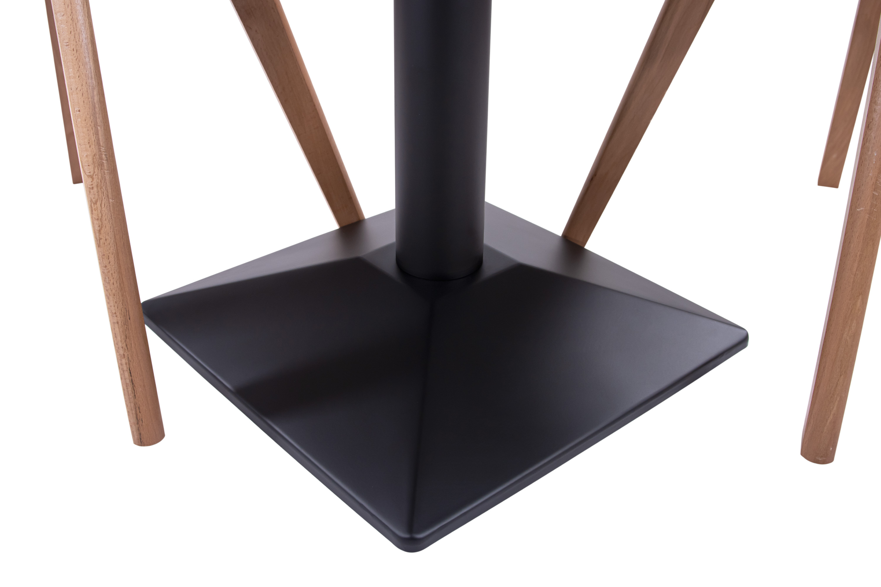 Das eckige Metallgestell in Schwarz ist nicht nur ein moderner Kontrast zum Holz, sondern sorgt zugleich für sicheren Stand. Die elegante Säulenform wirkt leicht und harmonisch – ideal, wenn Sie Wert auf eine luftige, elegante Optik legen.