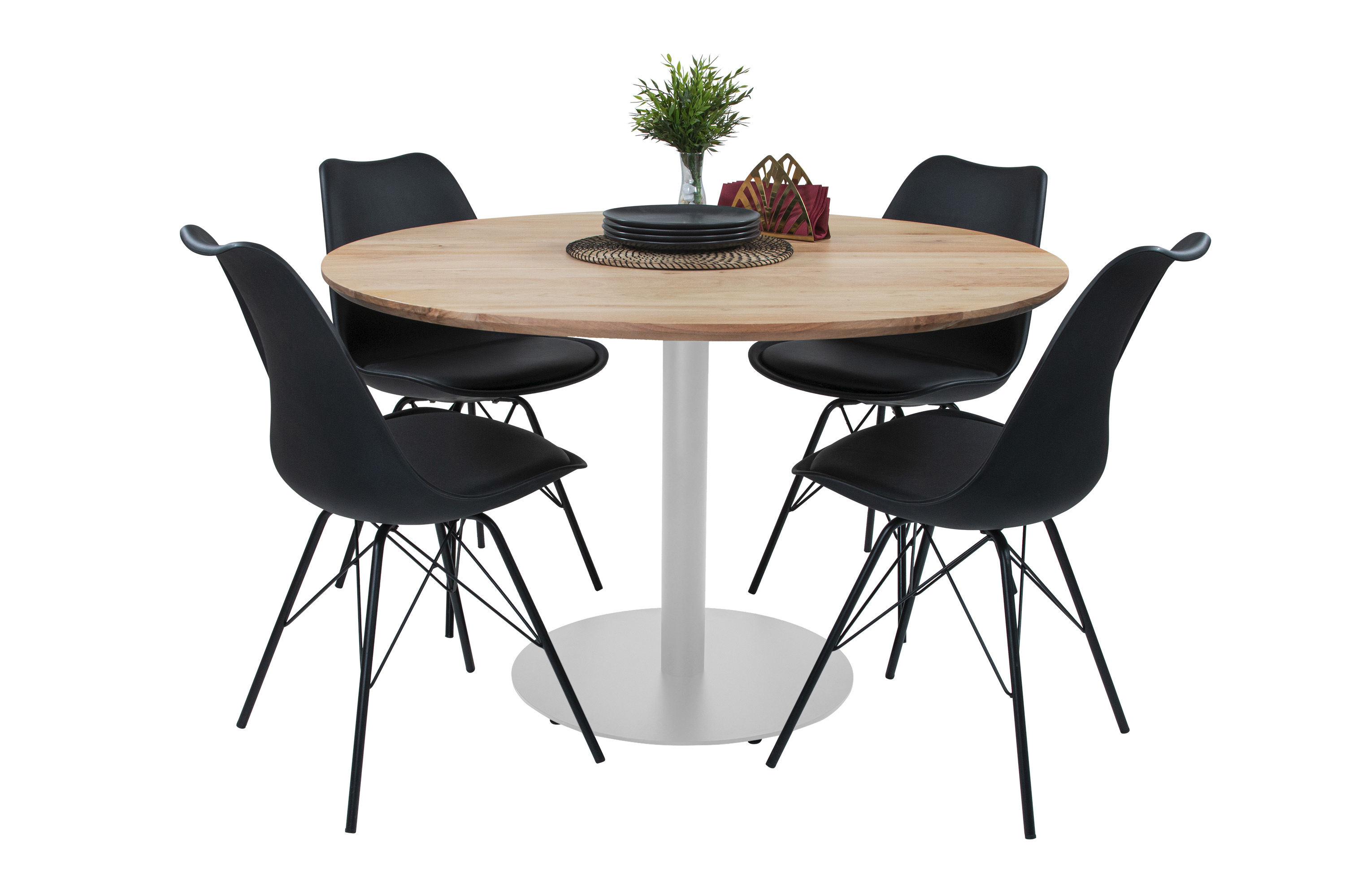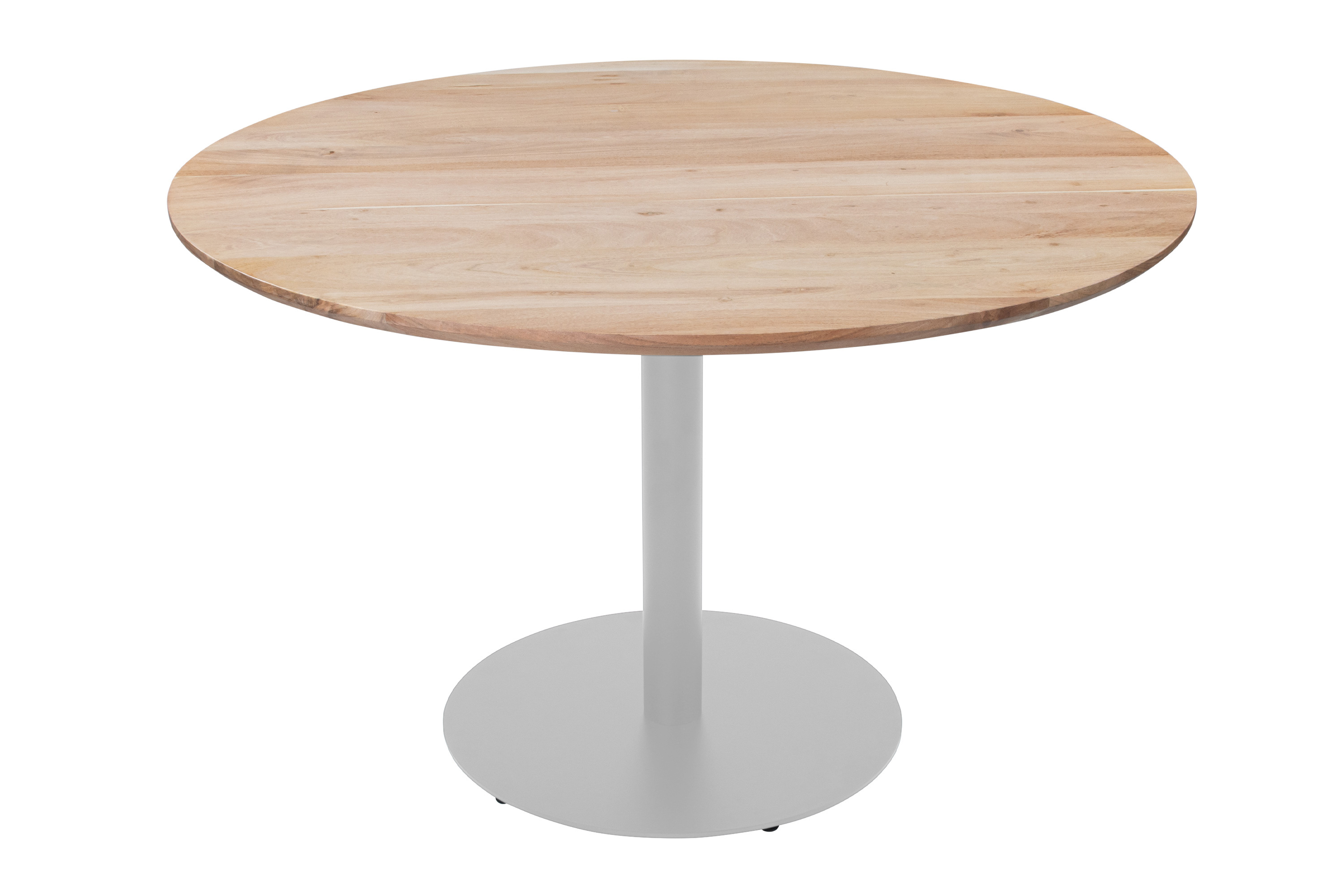 Bistrotisch Schweizer Kante massiv 120 cm Akazie naturfarben Säulengestell-rund silber BRASILIAN