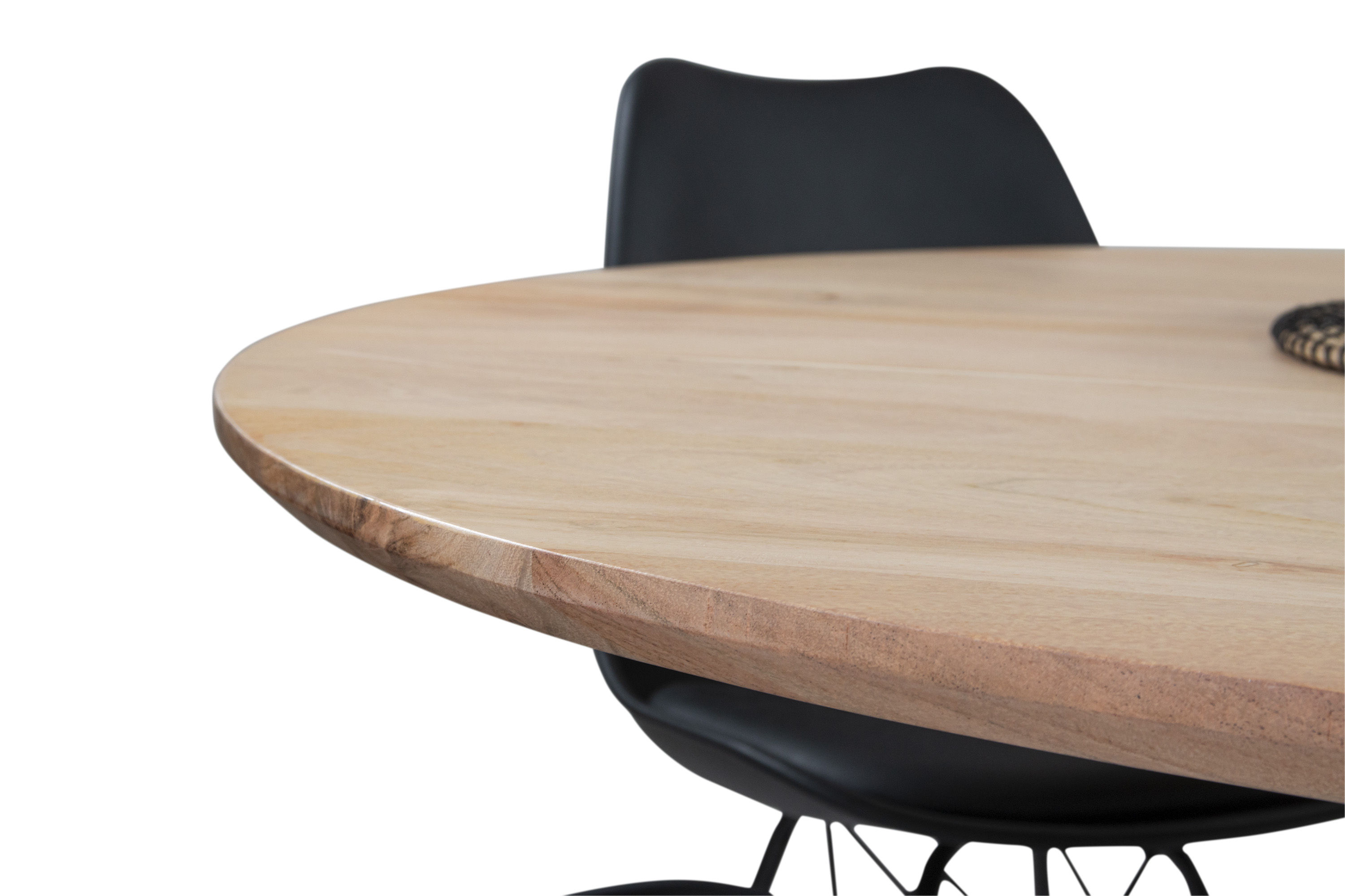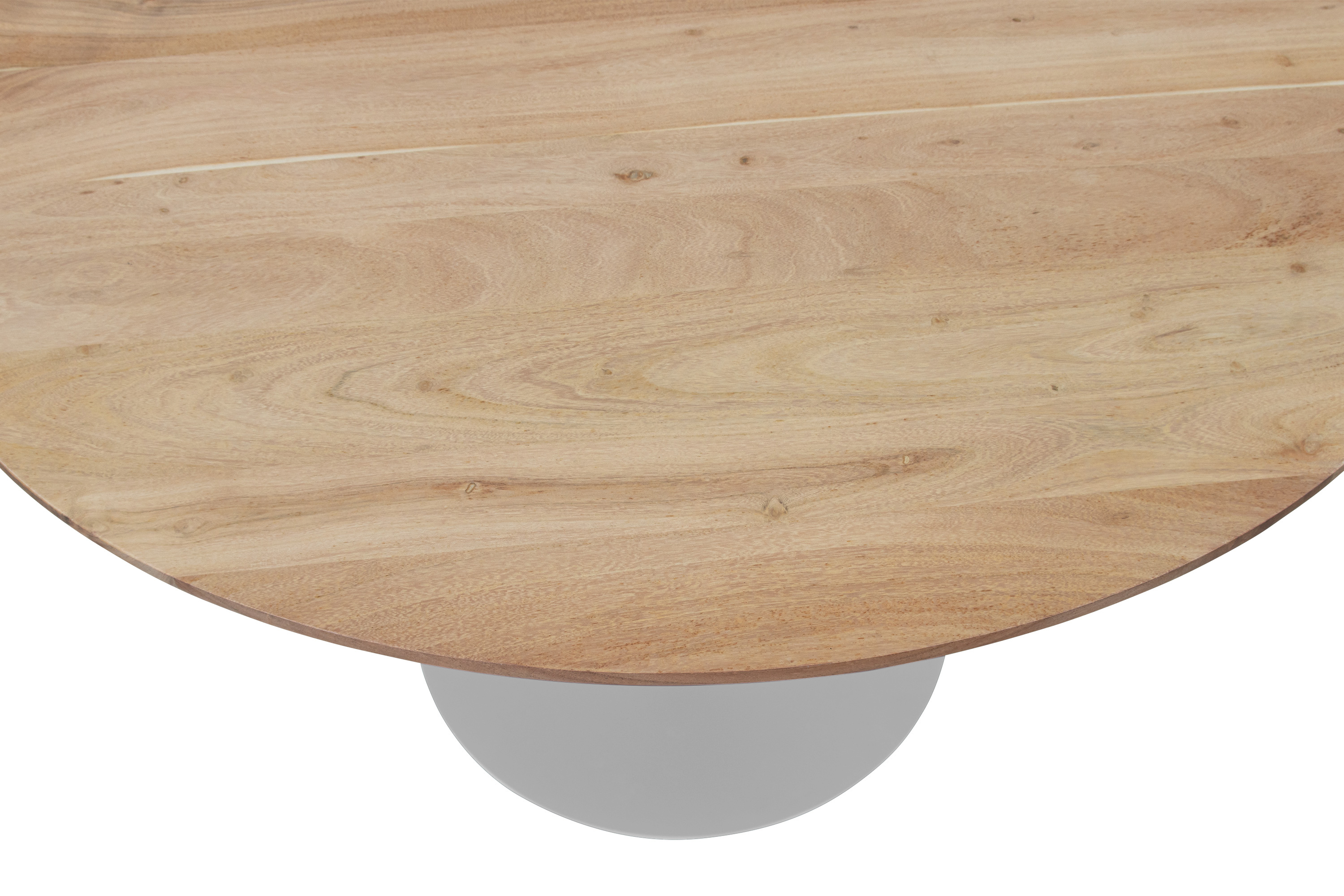 Die Tischplatte wird aus massivem Akazienholz gefertigt – ein edles Hartholz, das für seine Langlebigkeit und seine wunderschöne Maserung bekannt ist. Die naturfarbene Lackierung bringt die Struktur des Holzes wunderbar zur Geltung. So entsteht ein einzigartiger Esstisch, der Wärme ausstrahlt und jeden Raum aufwertet.