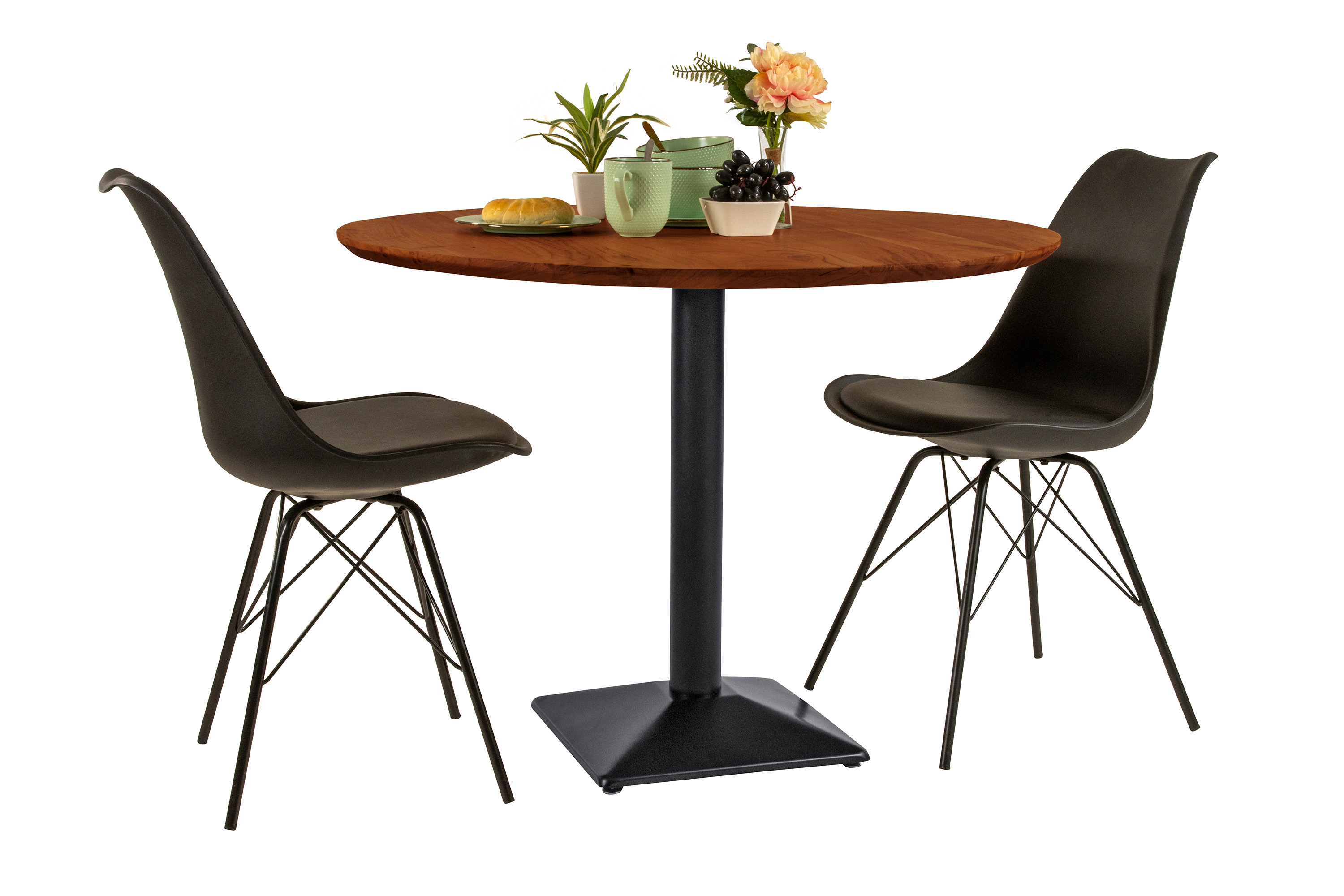 Bistrotisch Schweizer Kante massiv Akazie naturfarben 90 cm Säulengestell-eckig schwarz...