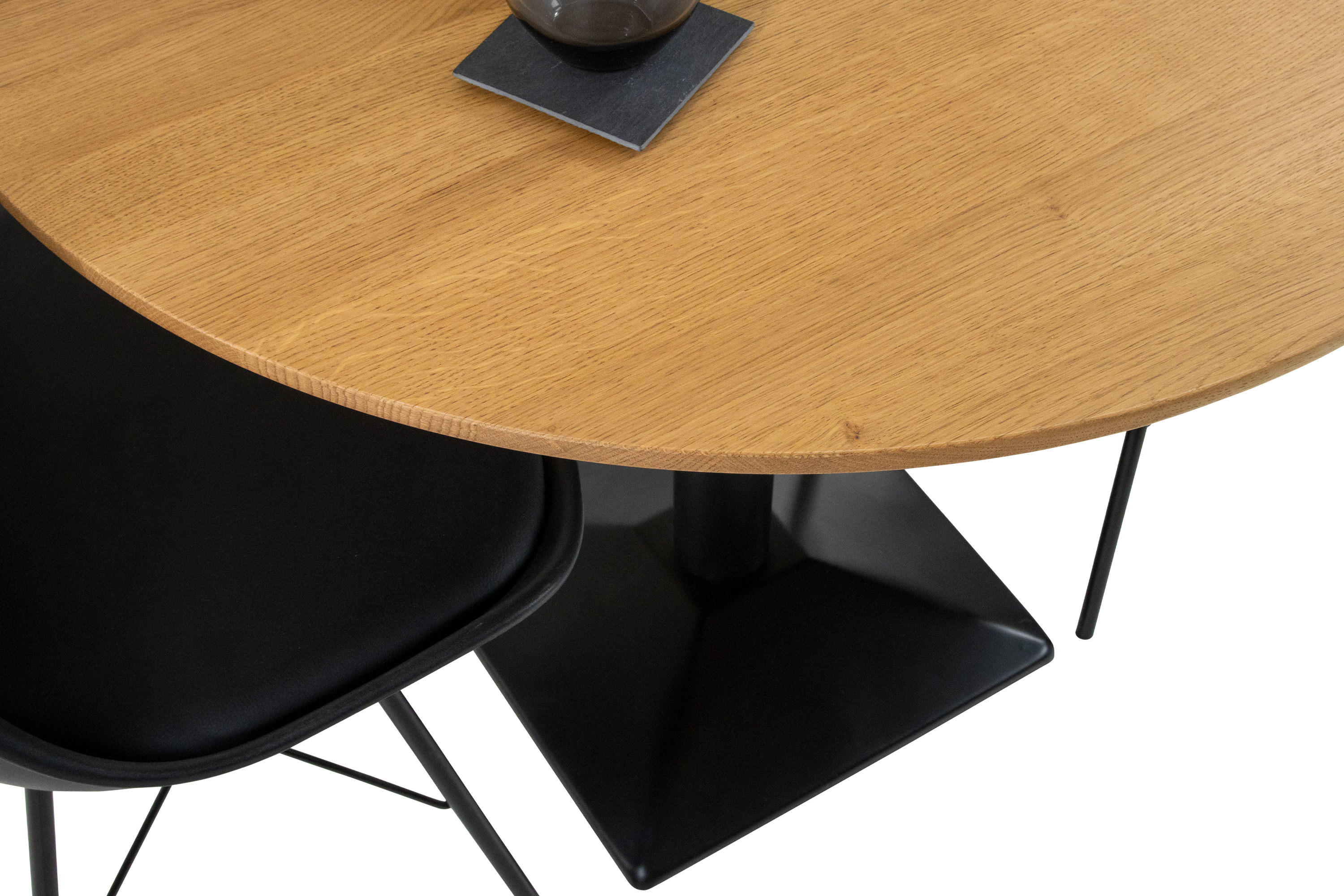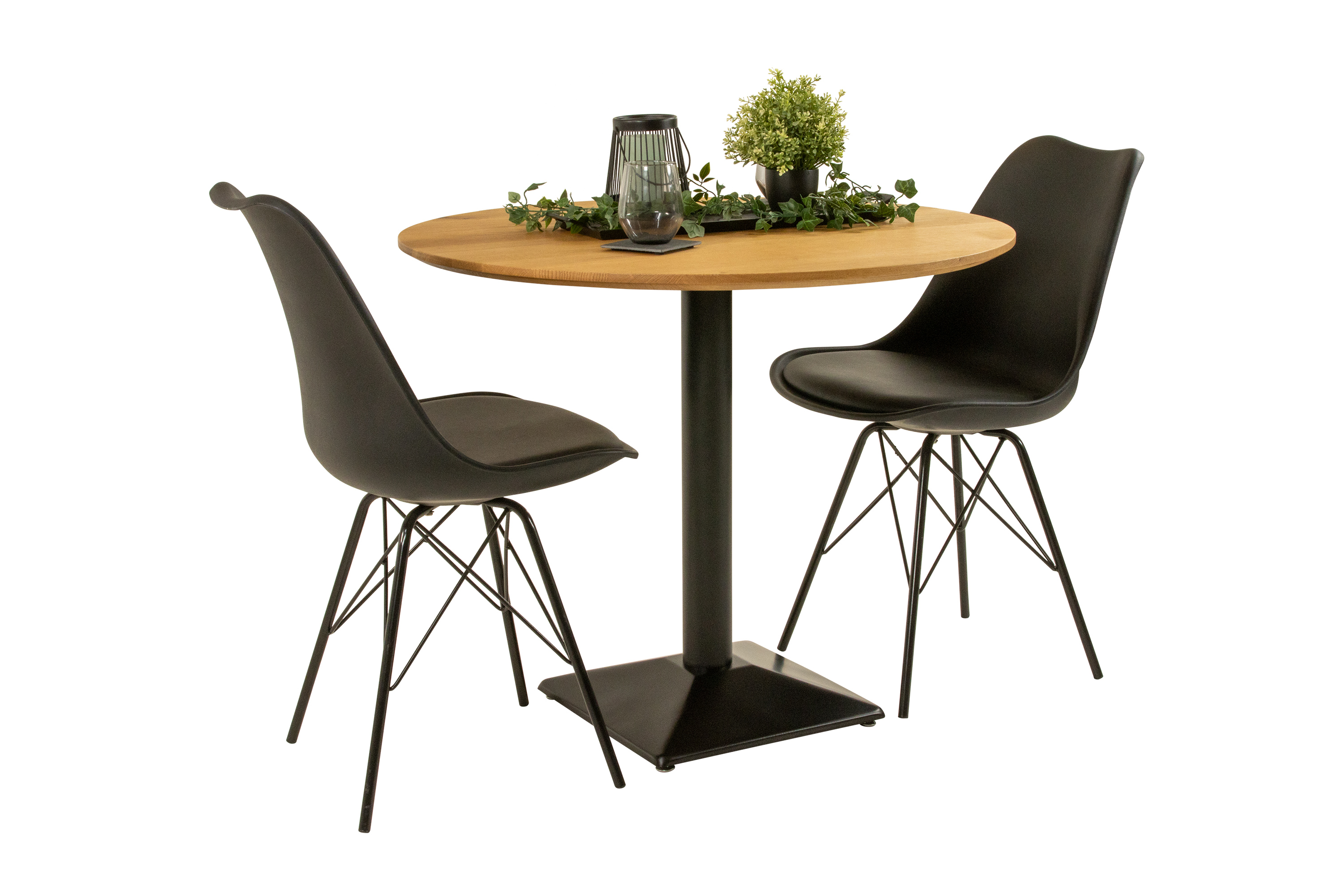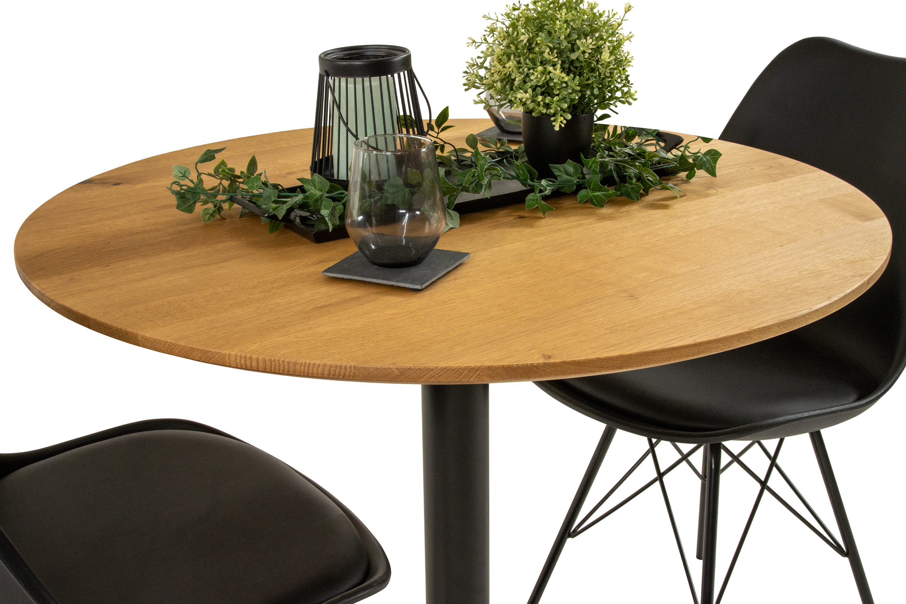 Bistrotisch Brasilia, rund 90 x 90 cm, Eichenholz massiv + geölt, Schweizer Kante, Säulengestell Metall Schwarz