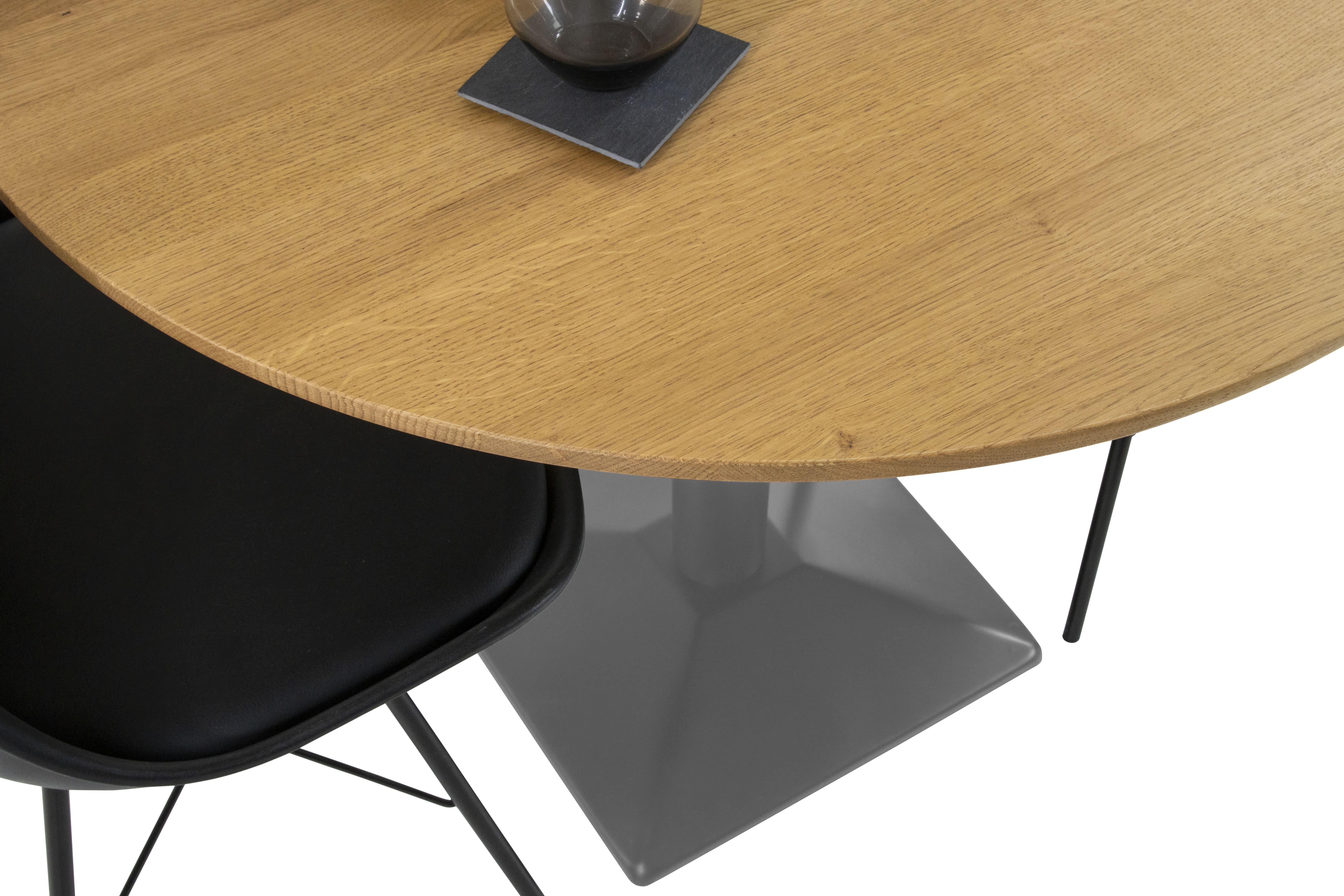 Die 26 mm starke Tischplatte aus echtem Eichenholz ist ein kleines Kunstwerk der Natur. Mit ihrer ausdrucksstarken Maserung bringt sie Wärme und Lebendigkeit in Ihre vier Wände. Jeder Holztisch ist ein Unikat – einzigartig in Struktur und Farbspiel, für ein Zuhause voller Persönlichkeit.
