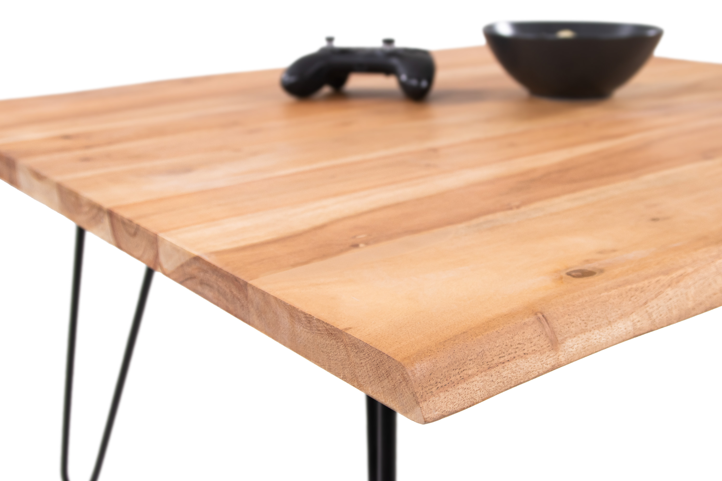 Natürliche & einzigartige Holzmaserung, Hairpin-Gestell in schwarz, mit echter Baumkante