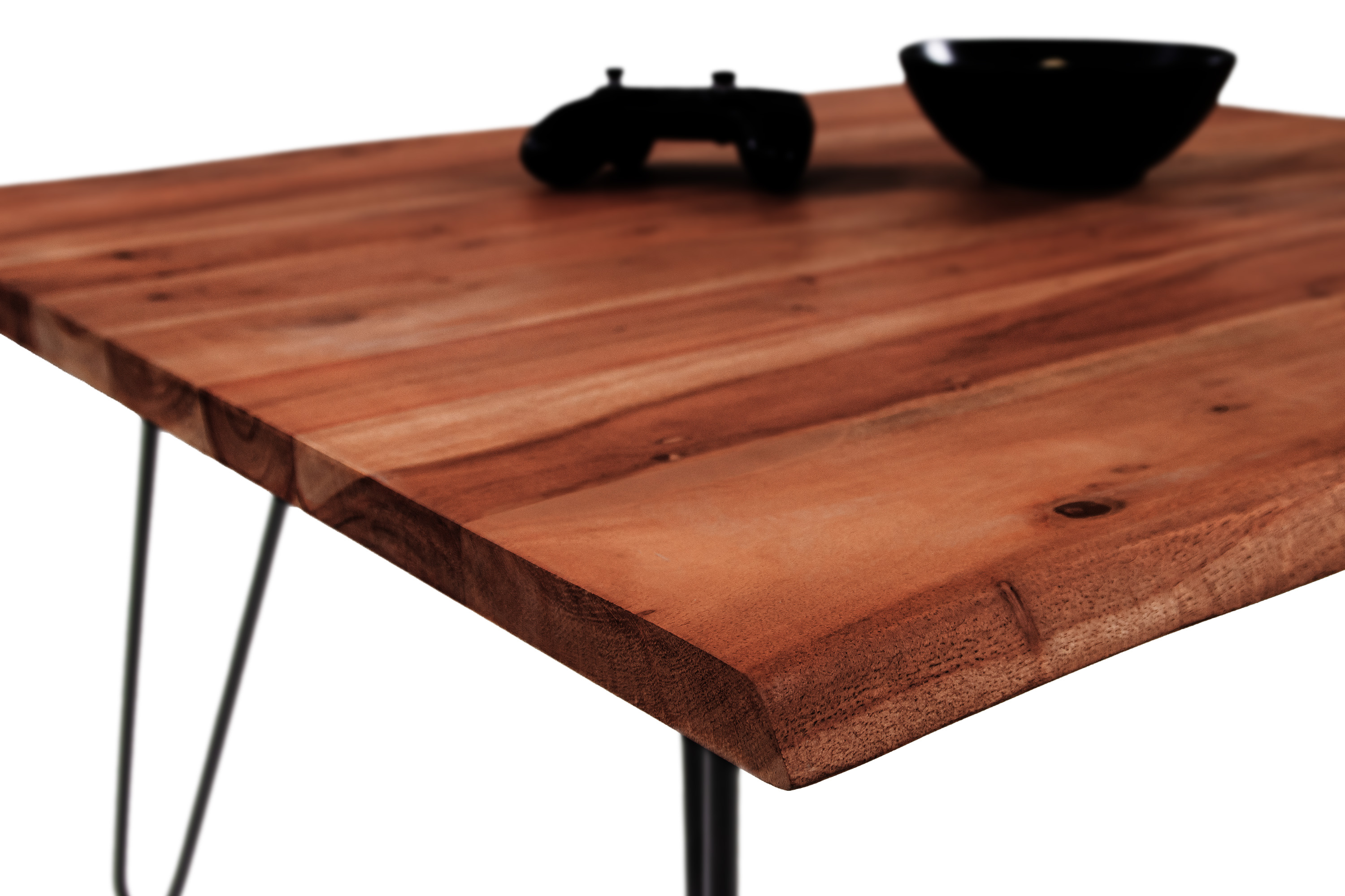 Weiterführende Links zu "Couchtisch Baumkante massiv Akazie nussbaum 80 x 80 Hairpin-Gestell schwarz NOAH"