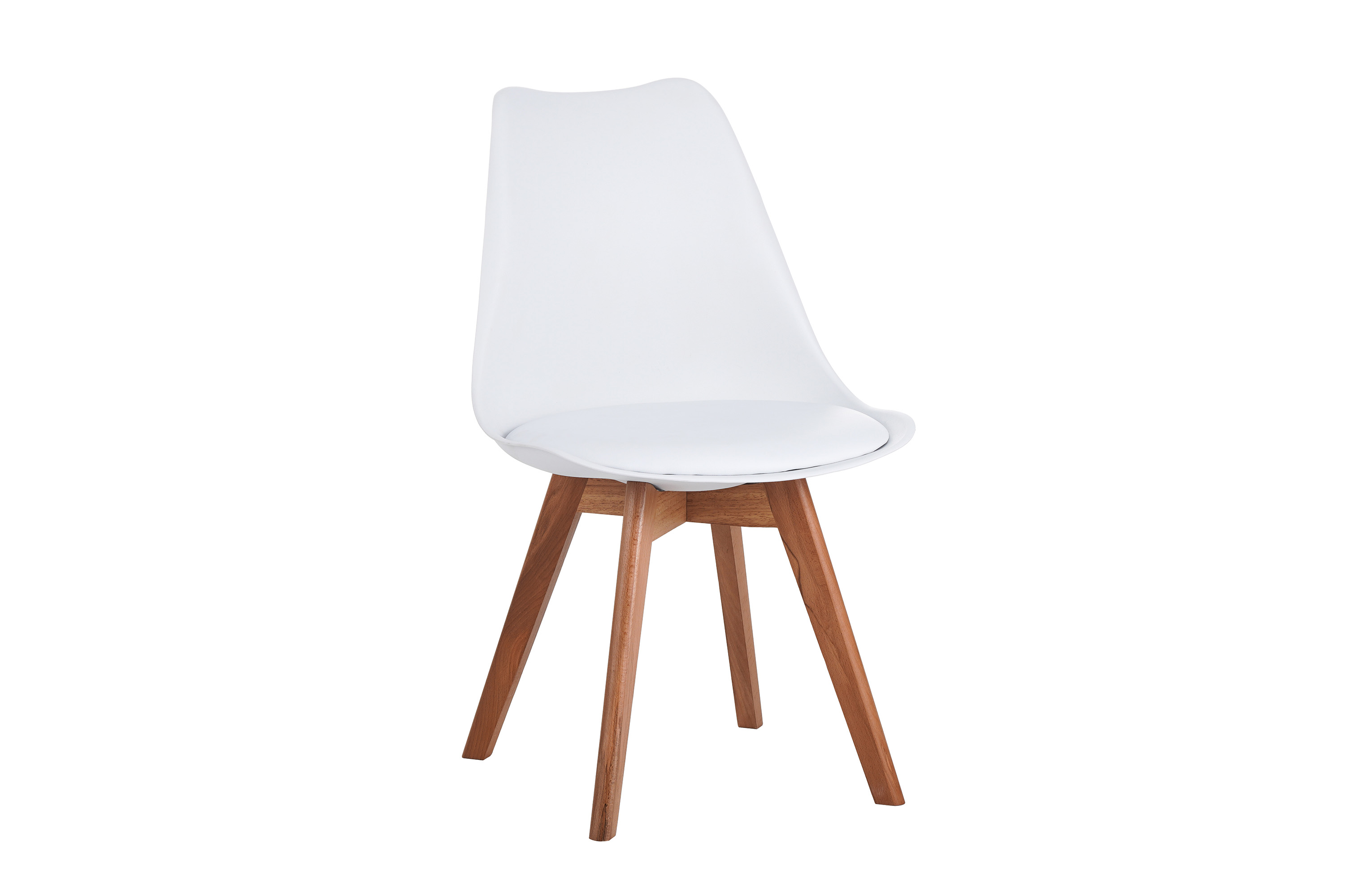 Die vier weißen Schalenstühle Lovelace ergänzen den Tisch ideal: Die ergonomisch geformte Kunststoffsitzschale mit integriertem Sitzkissen aus weißem Kunstleder bietet hohen Sitzkomfort, auch bei langen Abenden. Die vier Massivholzbeine in Akazienfarben fügen sich harmonisch in das Gesamtdesign ein und unterstreichen den natürlichen Look dieser stilvollen Essgruppe.