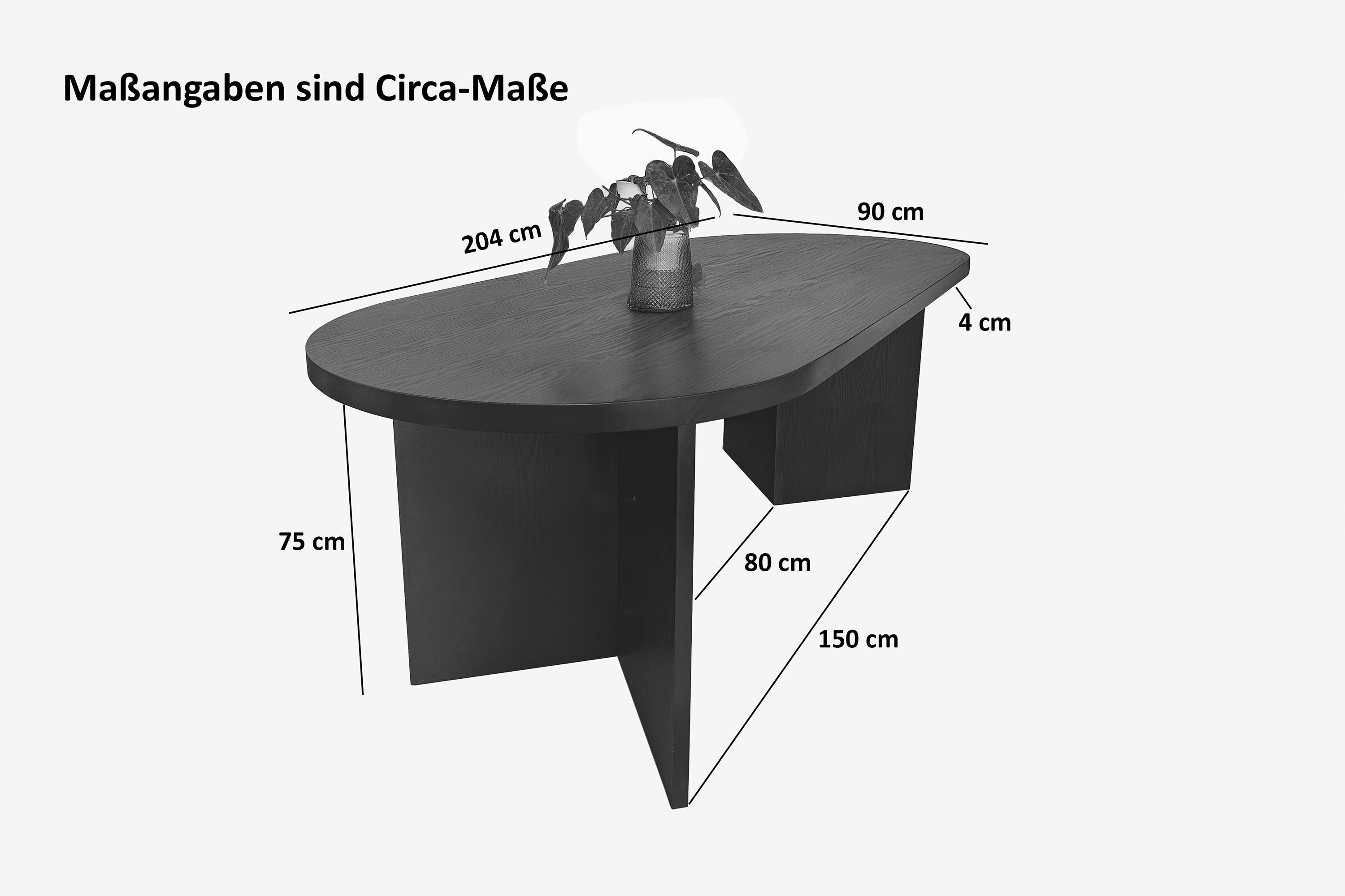 Esstisch Ovi | 204 x 90 cm | MDF Farbe Schwarz | Ovale & 40 mm Tischplatte | Tischbeine in V-Form
