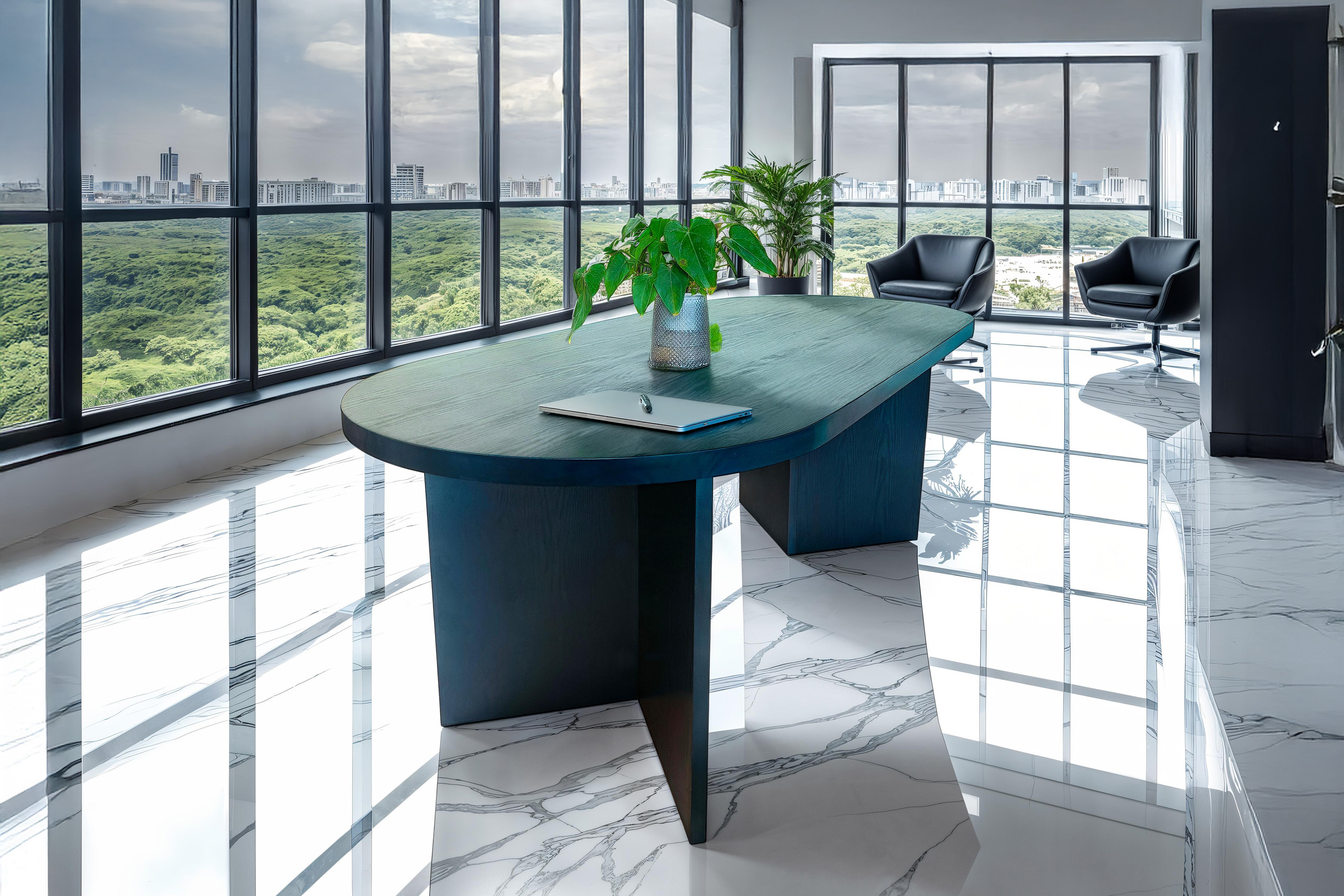 Ovale Tischplatte: Mit einer beeindruckenden Stärke von 40 mm bietet die Tischplatte nicht nur eine massive Optik, sondern ist auch bruchsicher und stabil. Die ovale Form sorgt für eine elegante Erscheinung und fügt sich harmonisch in jeden Raum ein.