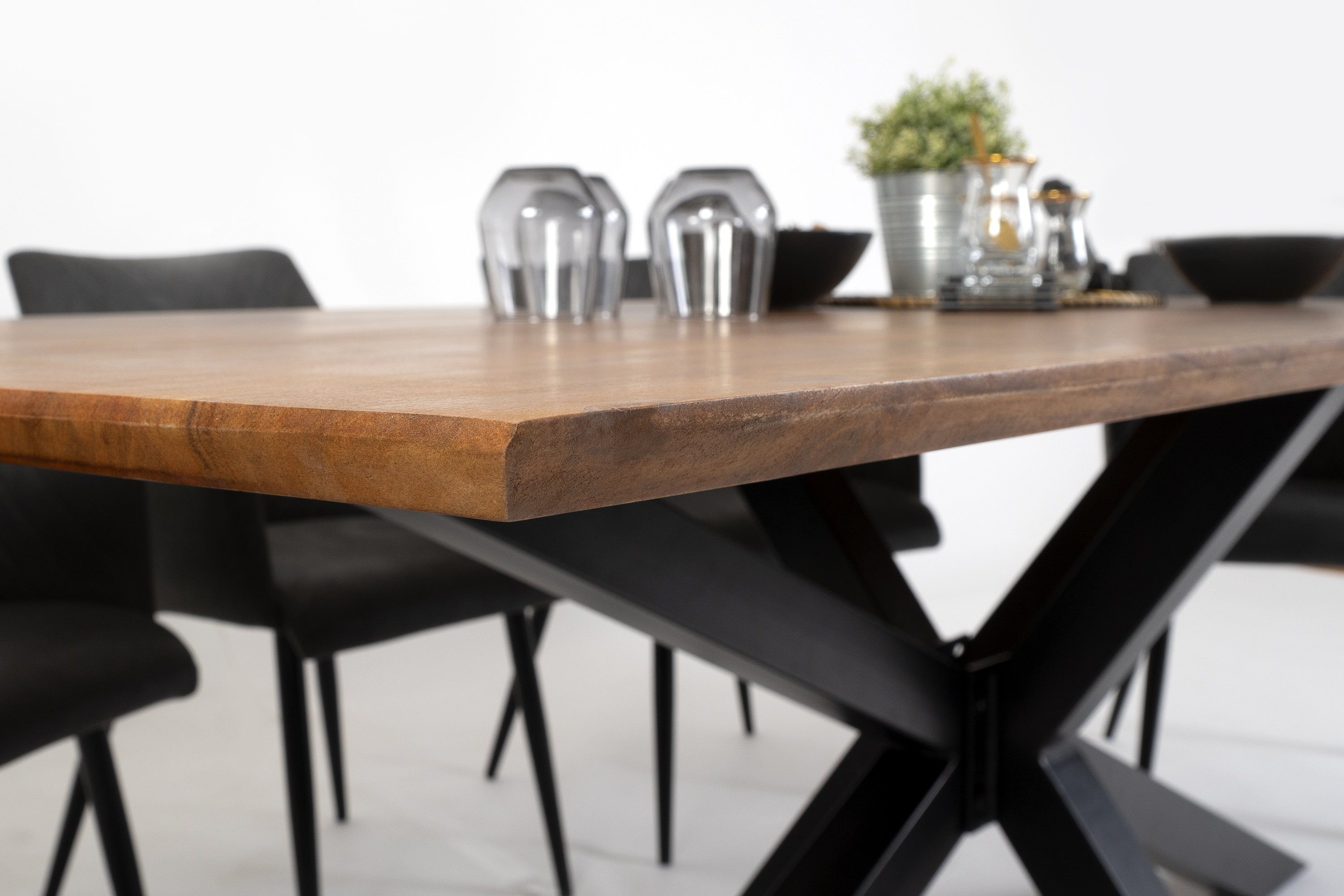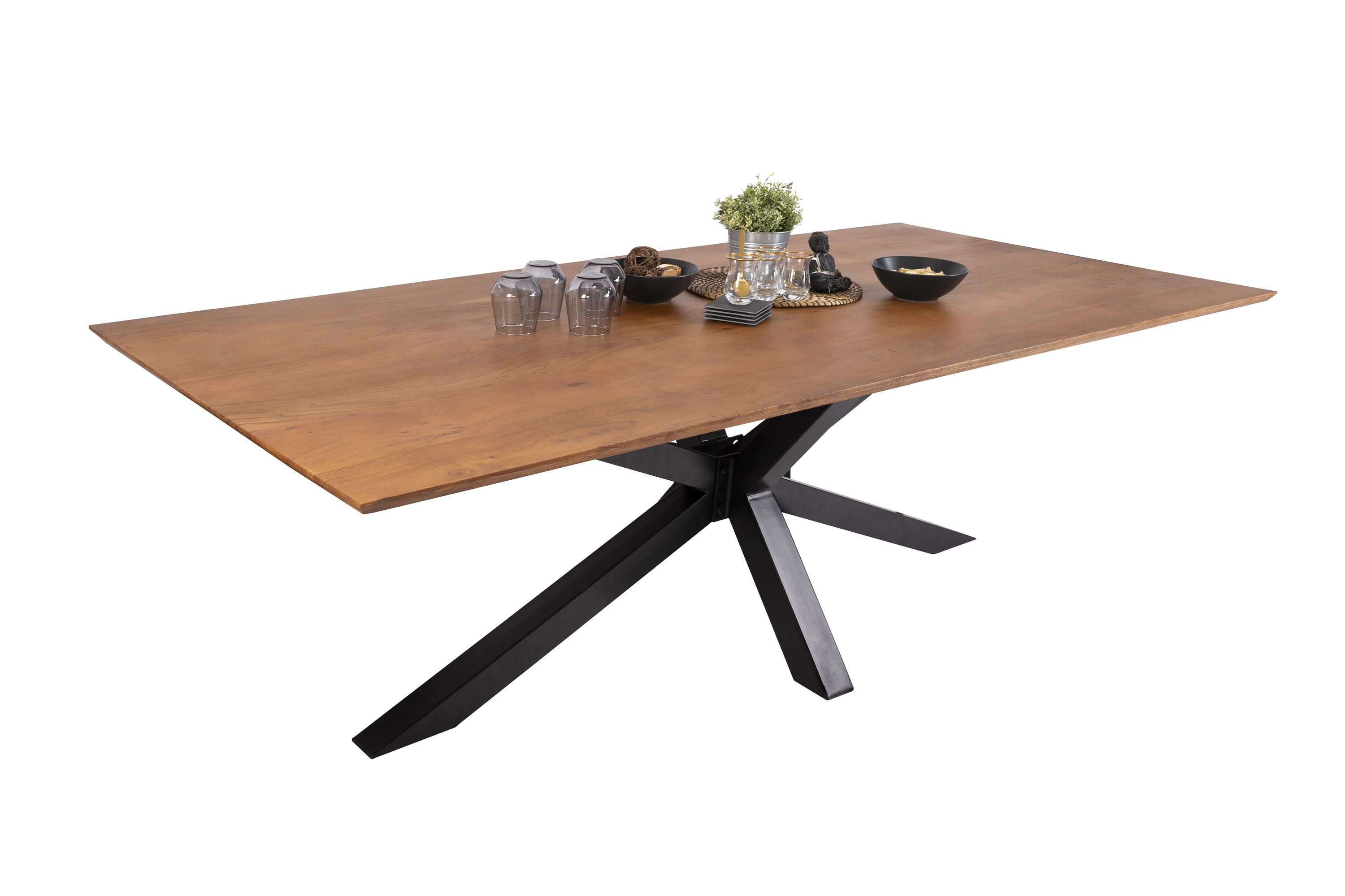 Trendiger Esstisch Abby, 280 x 100 cm, 26 mm Tischplatte, Akazienholz massiv + nussbaumfarben, Spider-Gestell Schwarz
