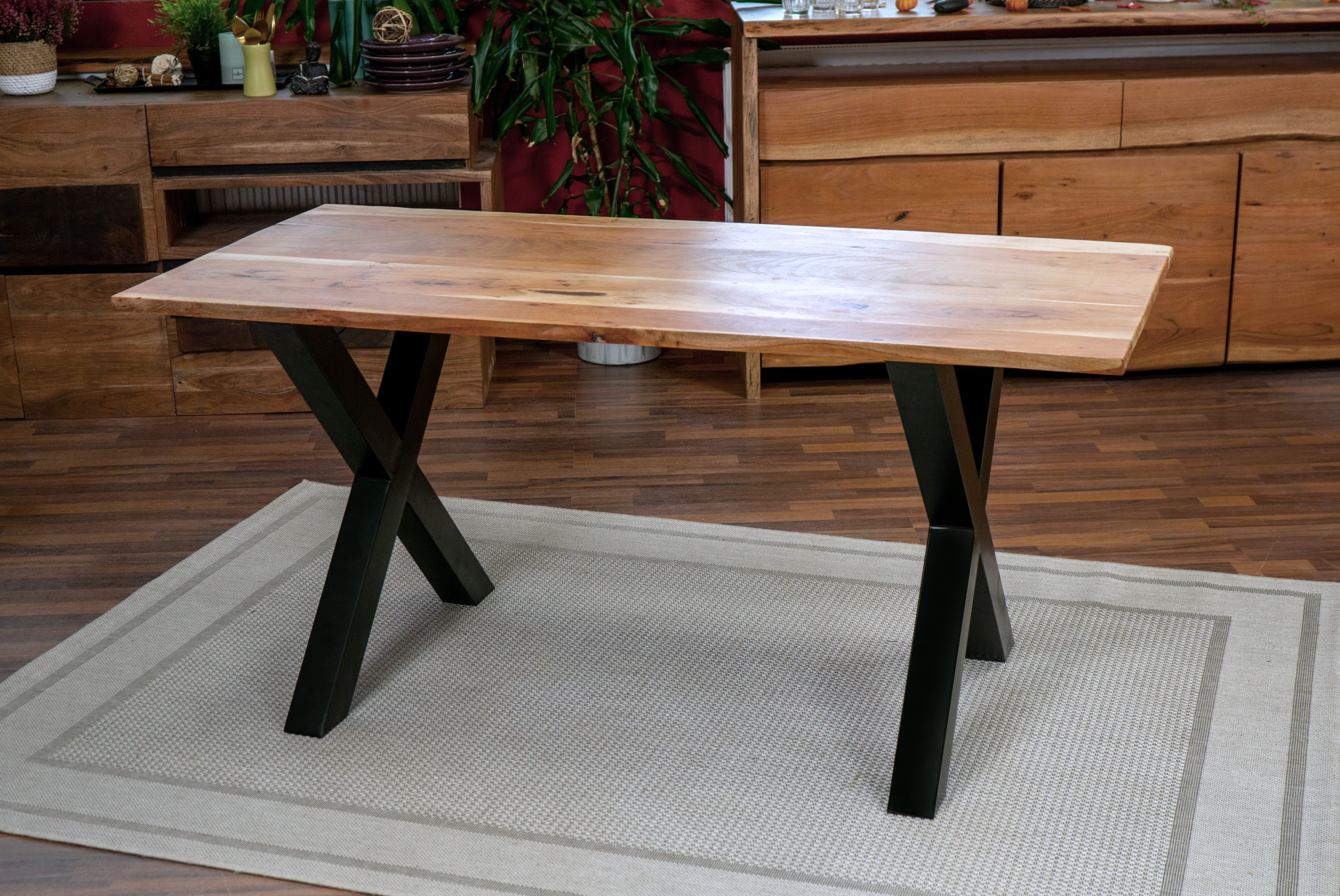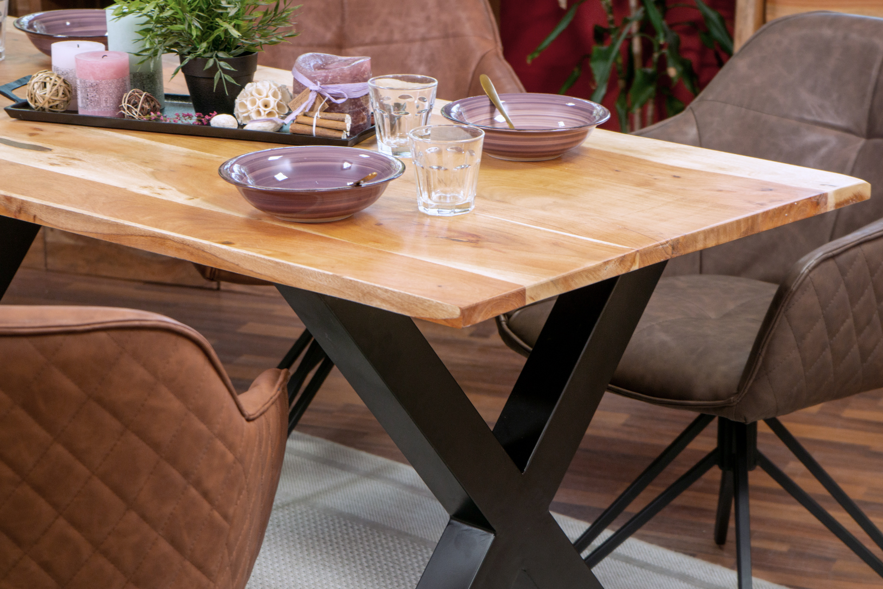 Design - Die Kombination aus Akazienholz und schlichtem X-Gestell aus Metall