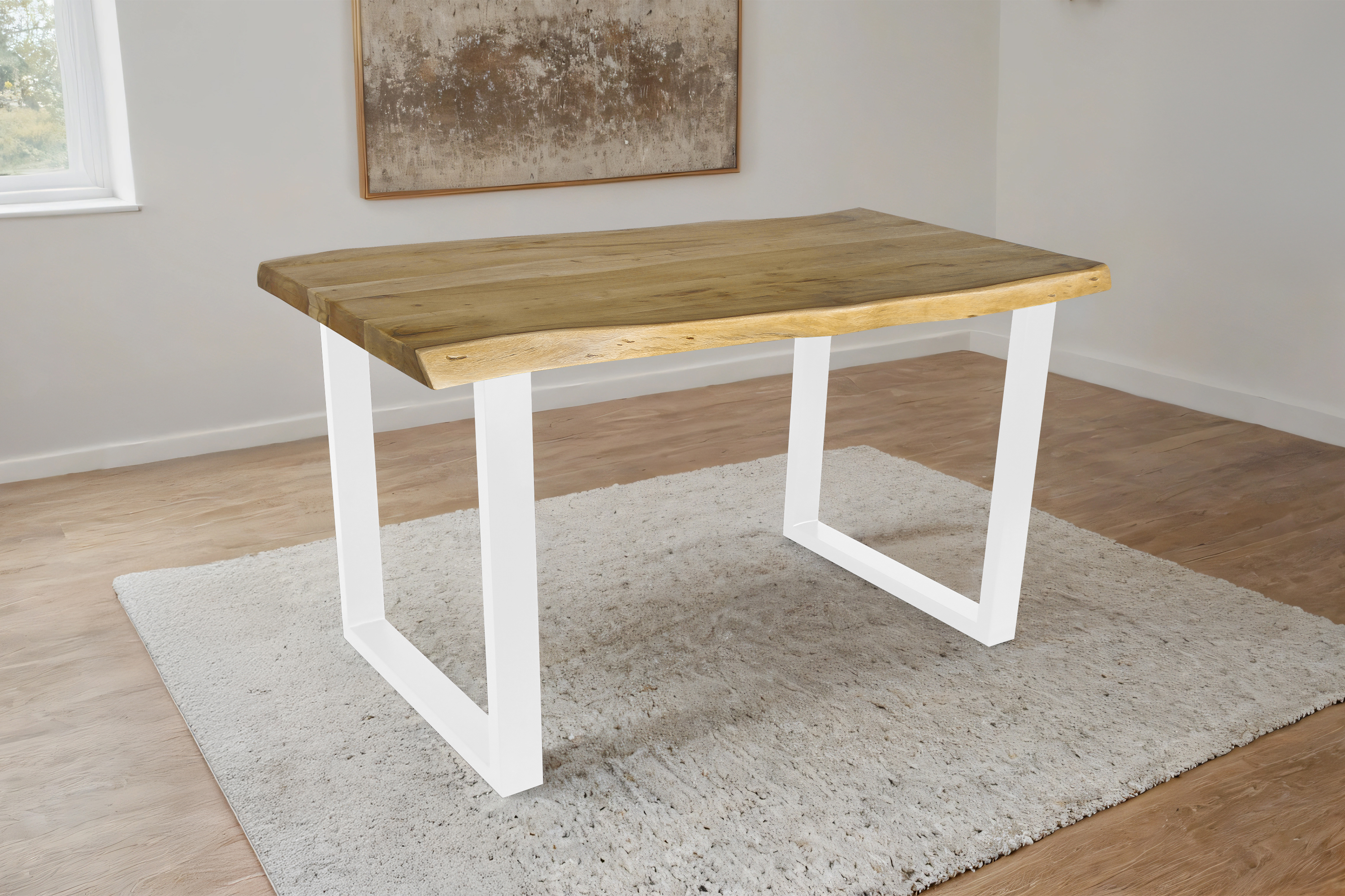 Produktinformationen "Esstisch Baumkante Akazie massiv eichenfarben 160 x 85 U-Gestell weiß CALI"
