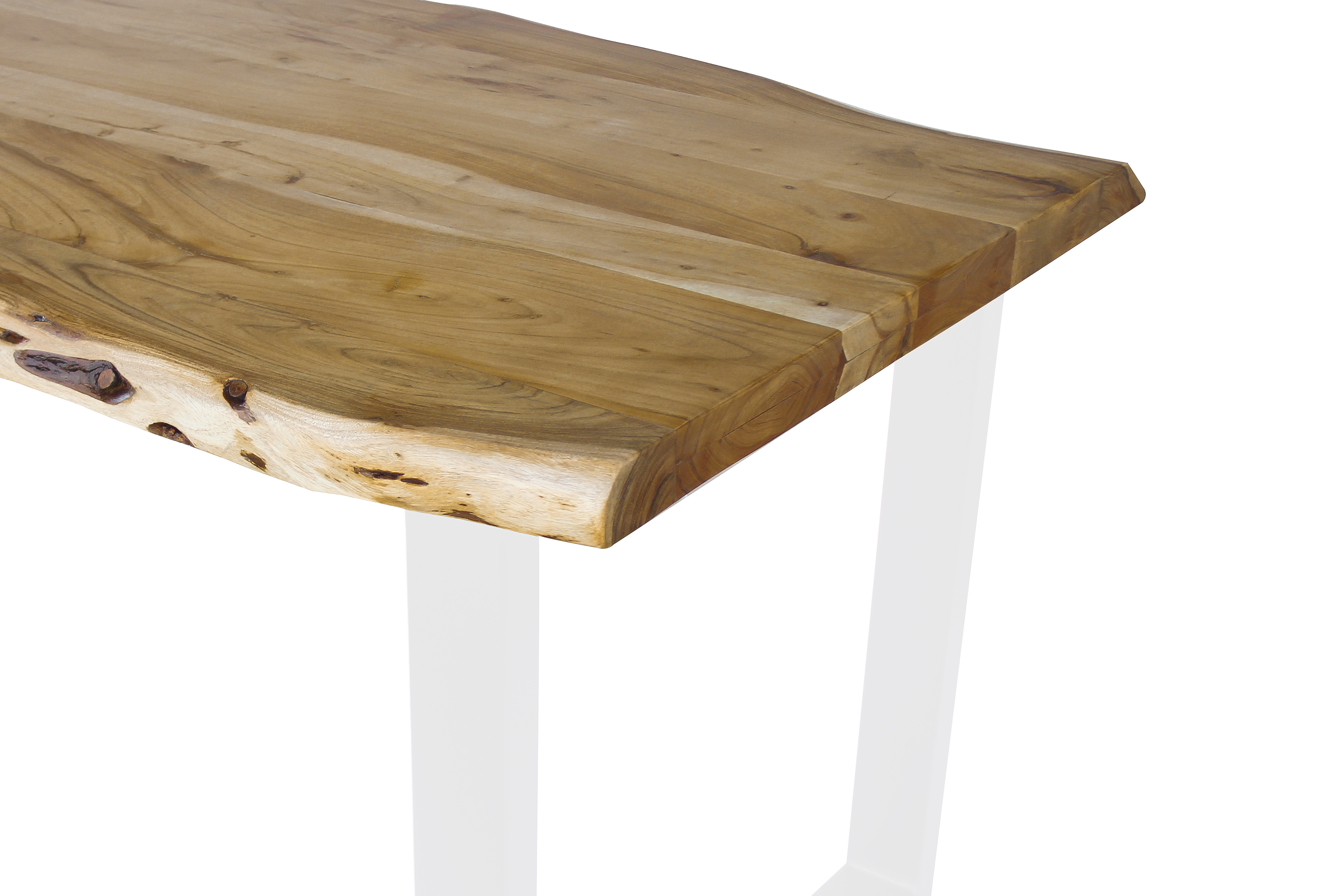 Weiterführende Links zu "Esstisch Baumkante Akazie massiv eichenfarben 160 x 85 U-Gestell weiß CALI"