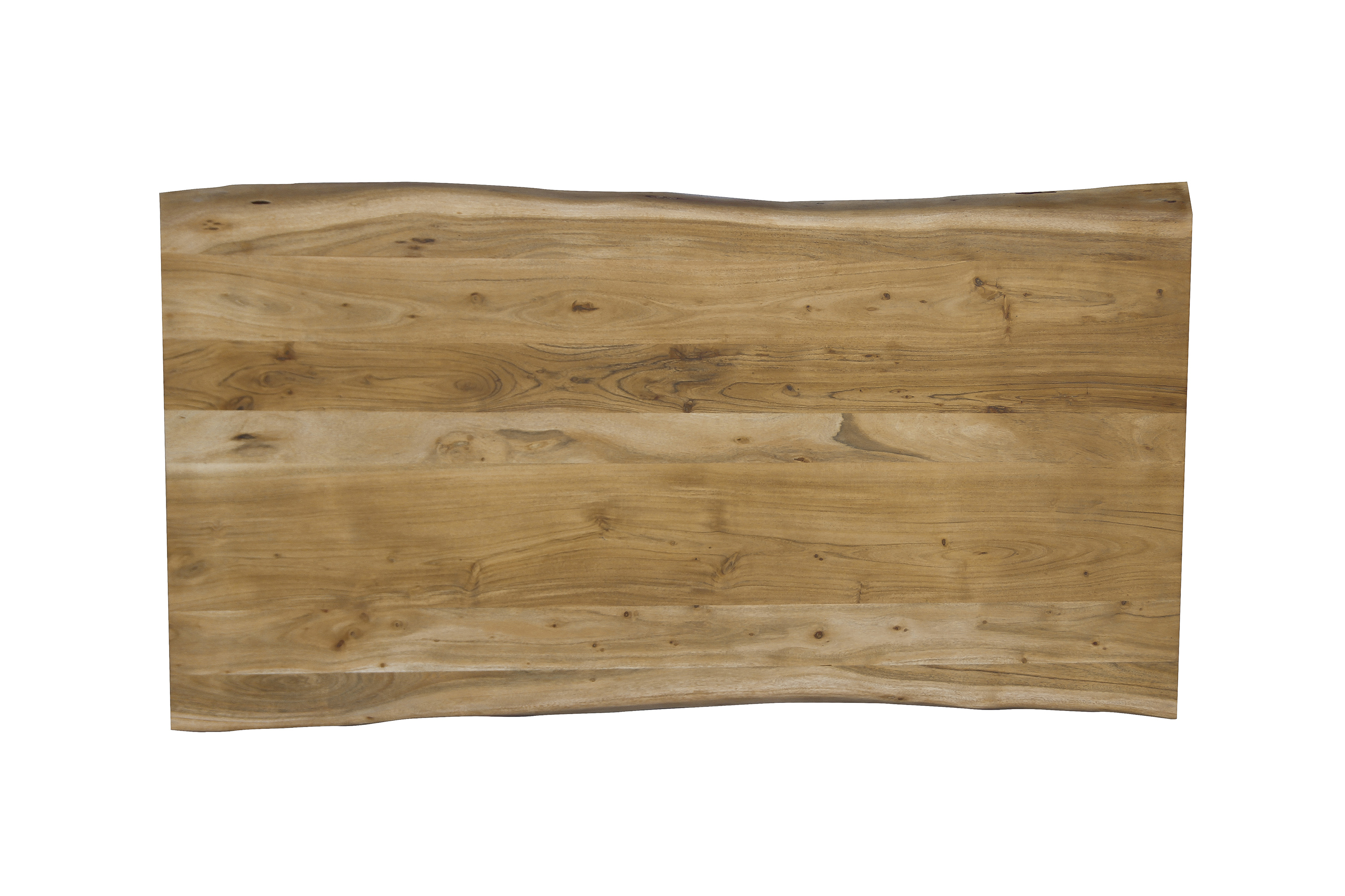 Der Esszimmertisch kombiniert rustikales Design mit moderner Funktionalität. Die massive Akazienholzplatte mit natürlicher Baumkante verleiht dem Tisch eine warme Ausstrahlung, während das U-förmige Metallgestell einen stabilen und stilvollen Kontrast setzt. Perfekt für ein harmonisches Esszimmer-Ambiente.