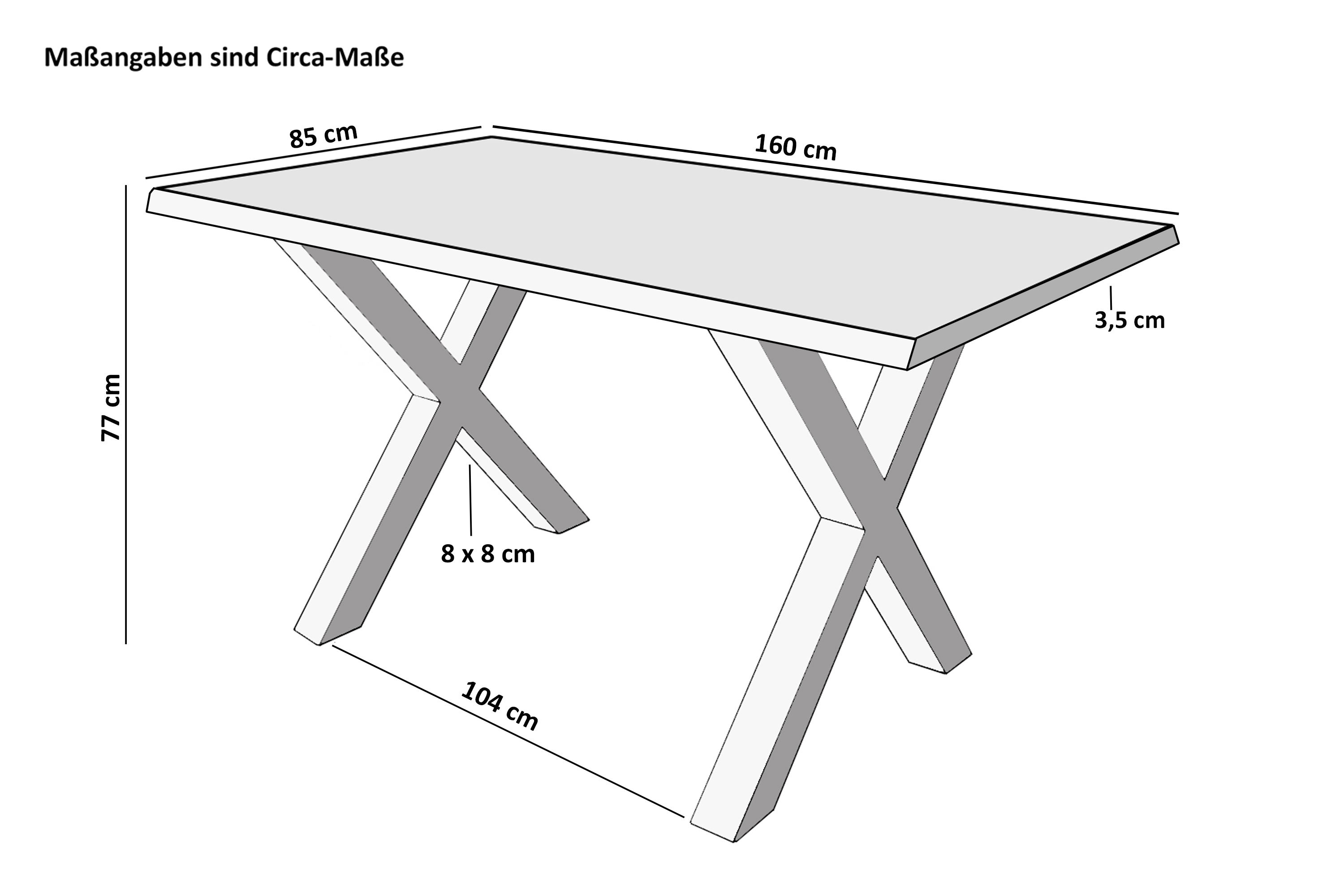 Esstisch Baumkante Holz-Optik Grau 160 x 85 X-Gestell schwarz JULIUS