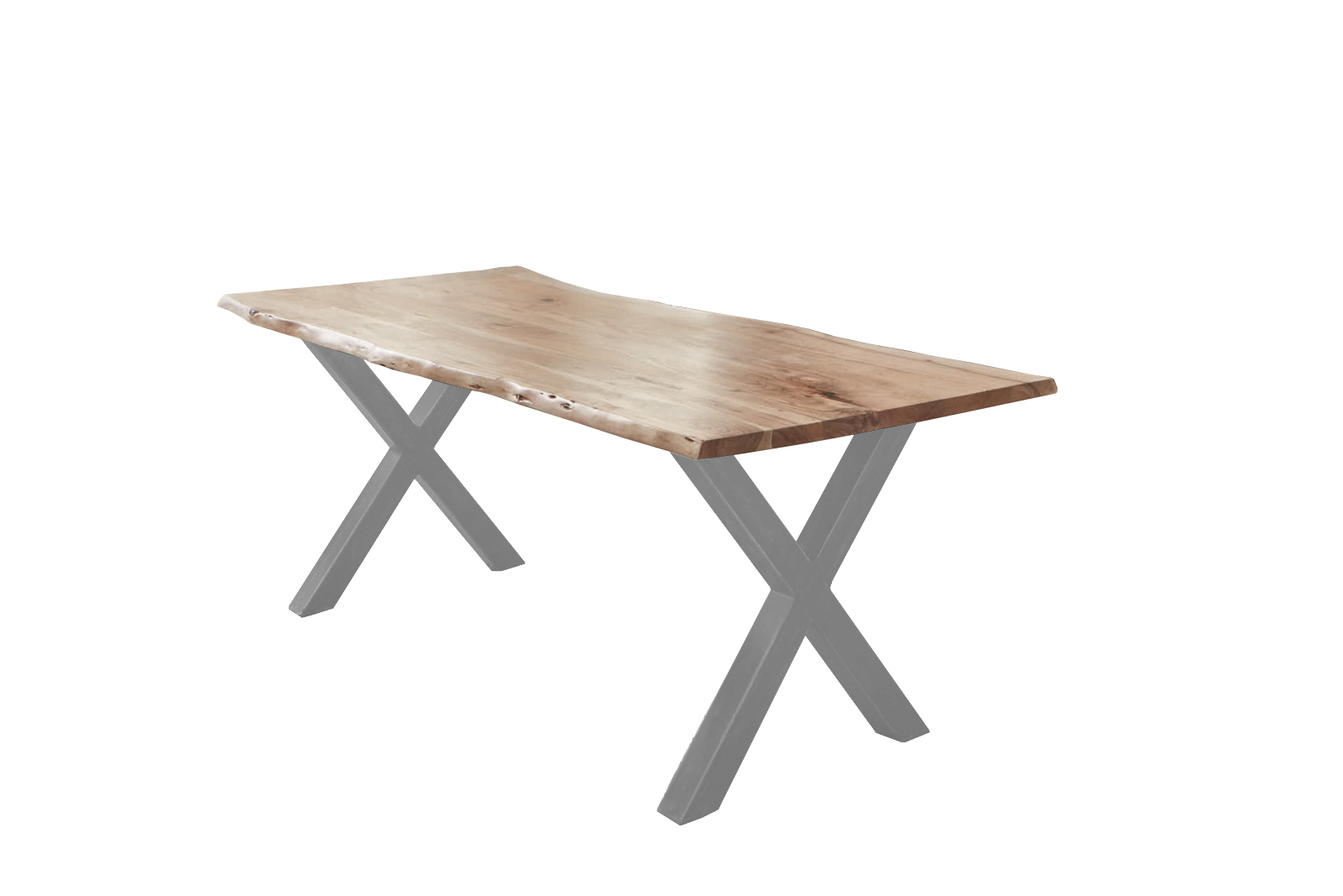 Produktinformationen "Esstisch Baumkante Akazie naturfarben 180 x 90 cm X-Gestell silber FREDERIK"