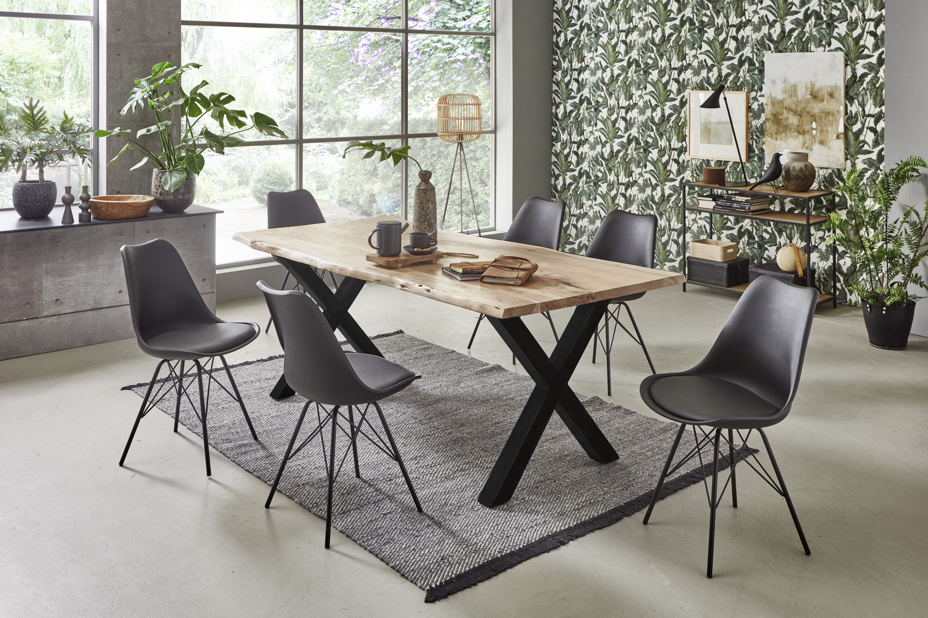 Esstisch Baumkante Akazie naturfarben 180 x 90 cm X-Gestell schwarz FREDERIK