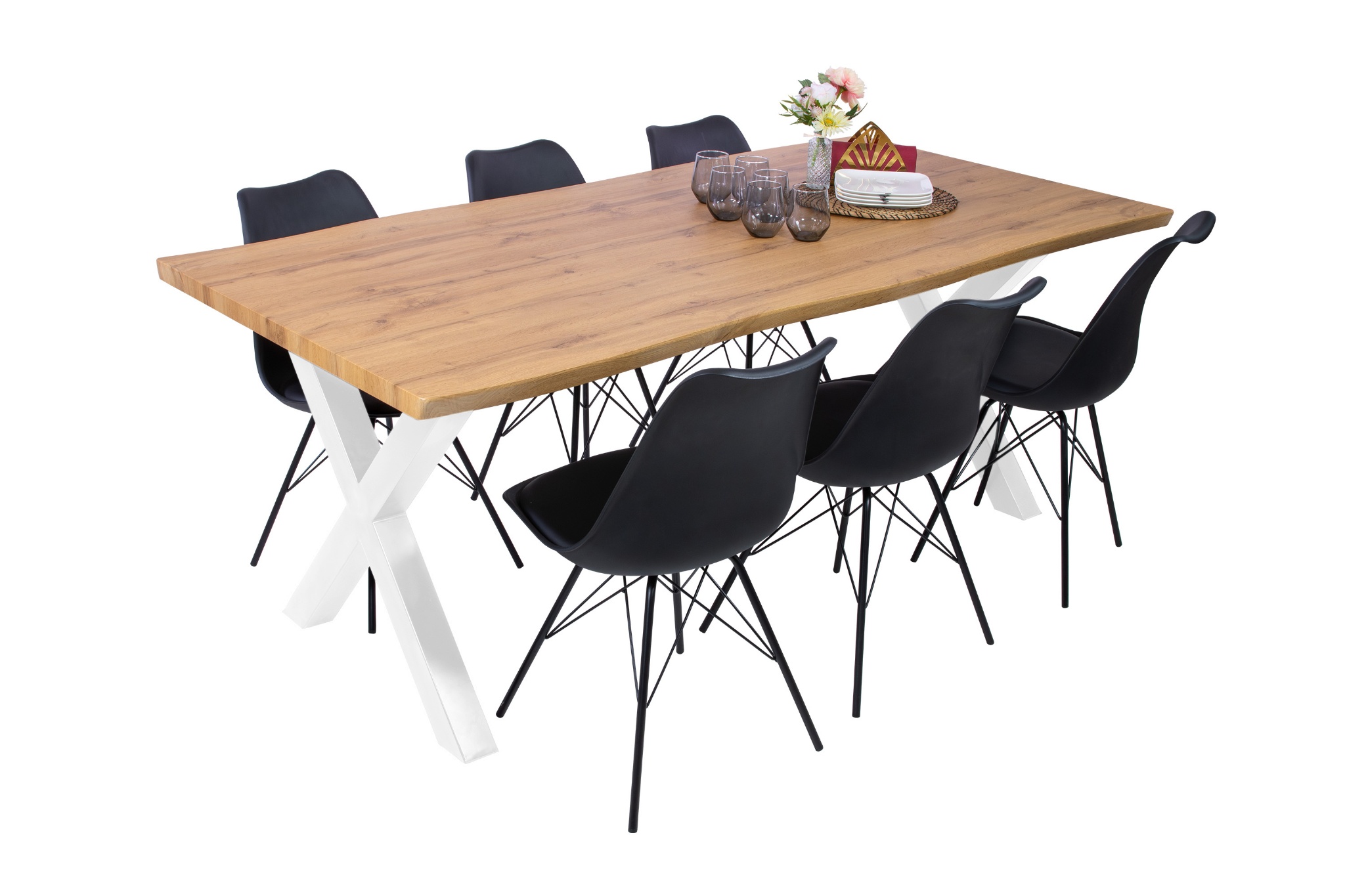 Esstisch Baumkante Holz-Optik Wildeiche 180 x 90 X-Gestell weiß JOSY