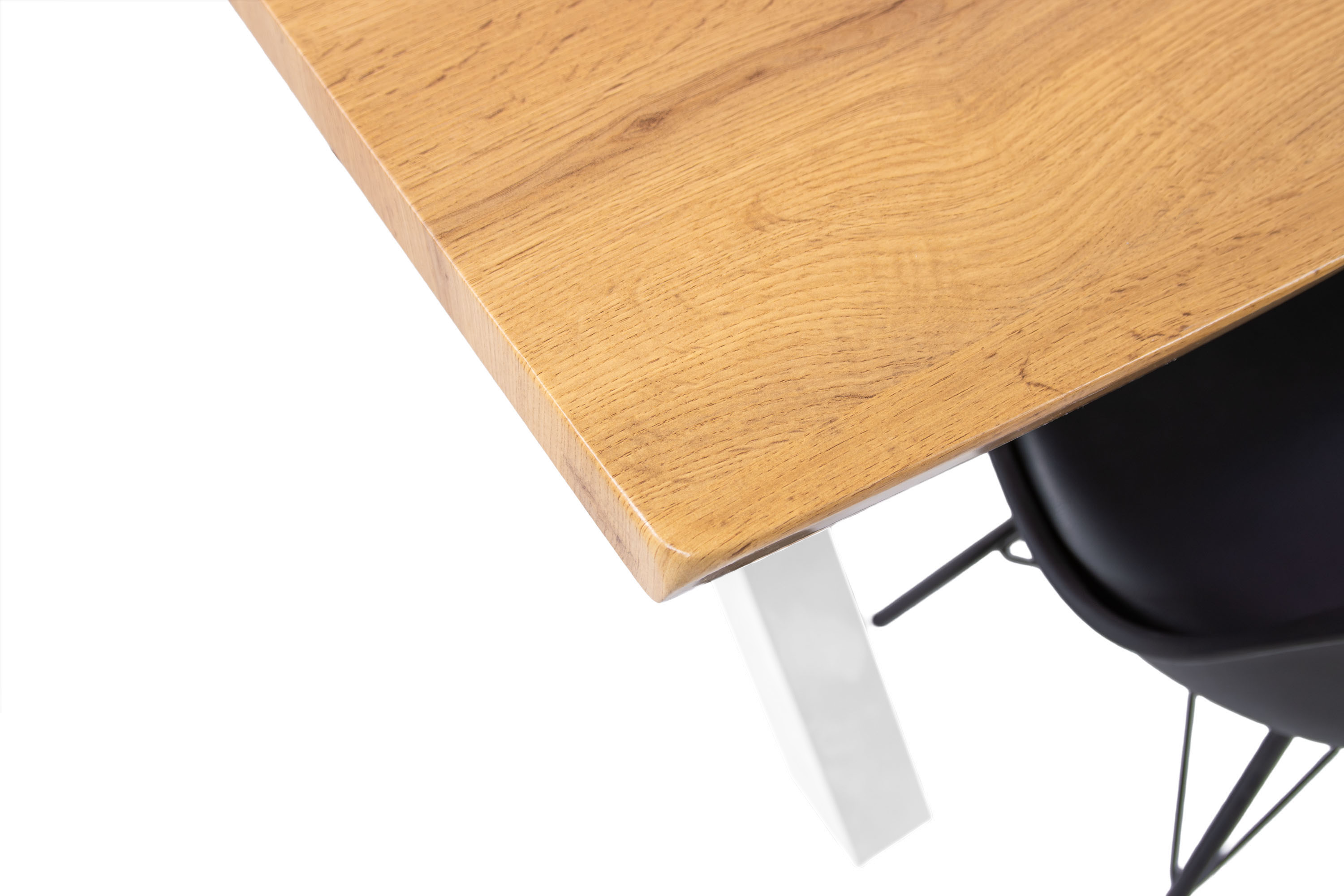 Hochwertige Tischplatte: Die Tischplatte kombiniert die warme Optik von Wildeiche mit der Robustheit und Pflegeleichtigkeit von MDF, das auch bei Schwankungen in der Raumtemperatur formstabil bleibt.