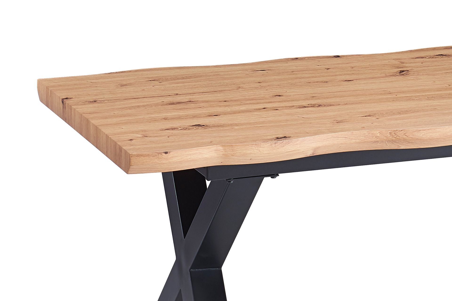 Produktinformationen "Esstisch Baumkante Holz Wildeiche-Optik 160(240) x 90 X-Gestell schwarz SWAN"