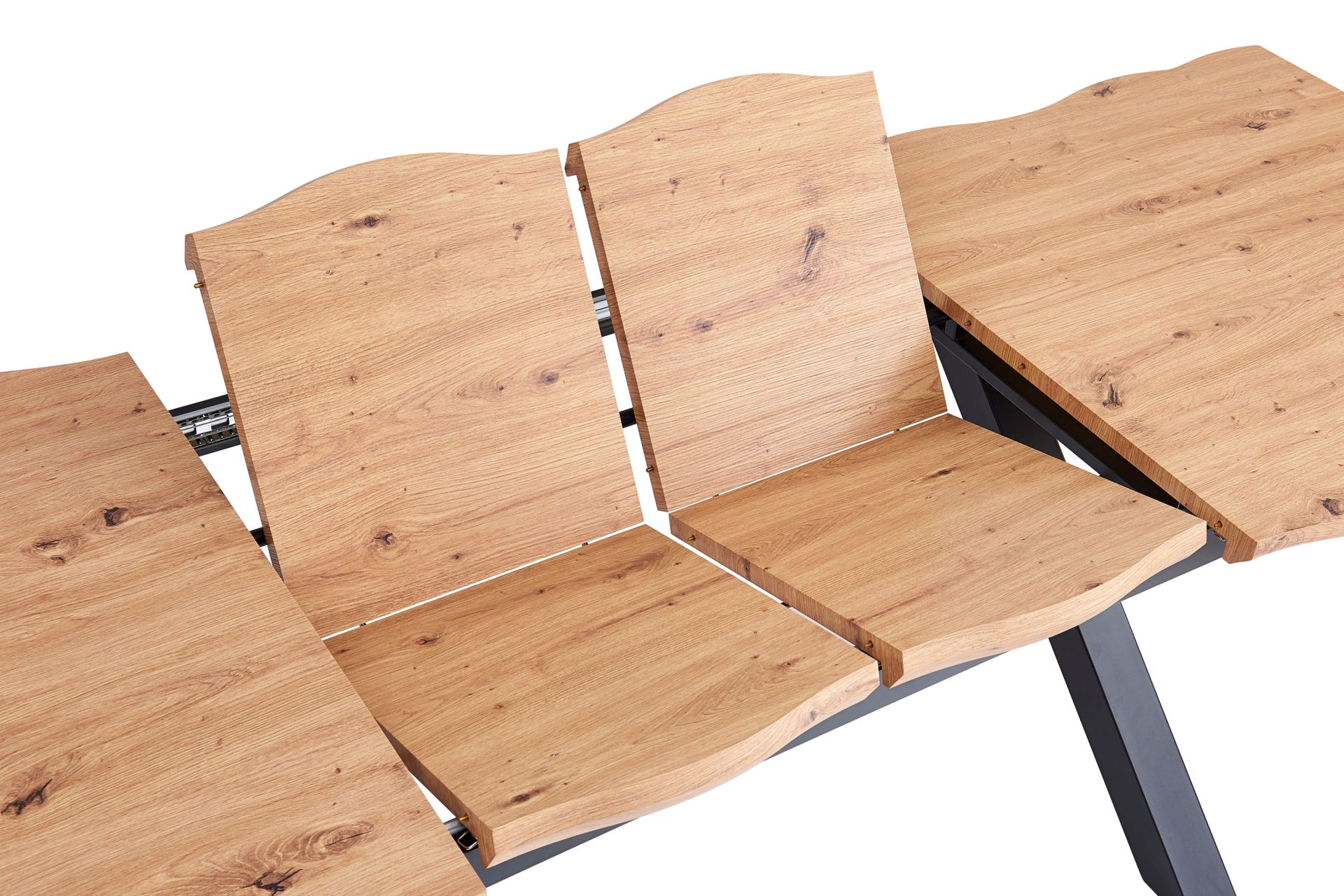 Robuster Esstisch Swan 160 – 240 x 90 cm, ausziehbar, Baumkante, Holz Wildeiche-Optik, Tischbeine in X-Form
