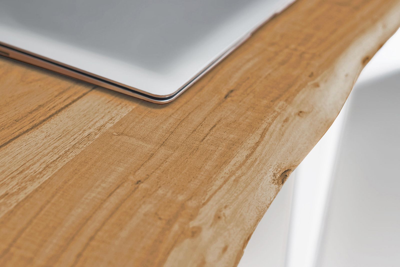 • Die Tischkanten an den Längsseiten entsprechen der natürlichen Form des Baumstamms, aus dem das Holz herausgeschnitten wurde.