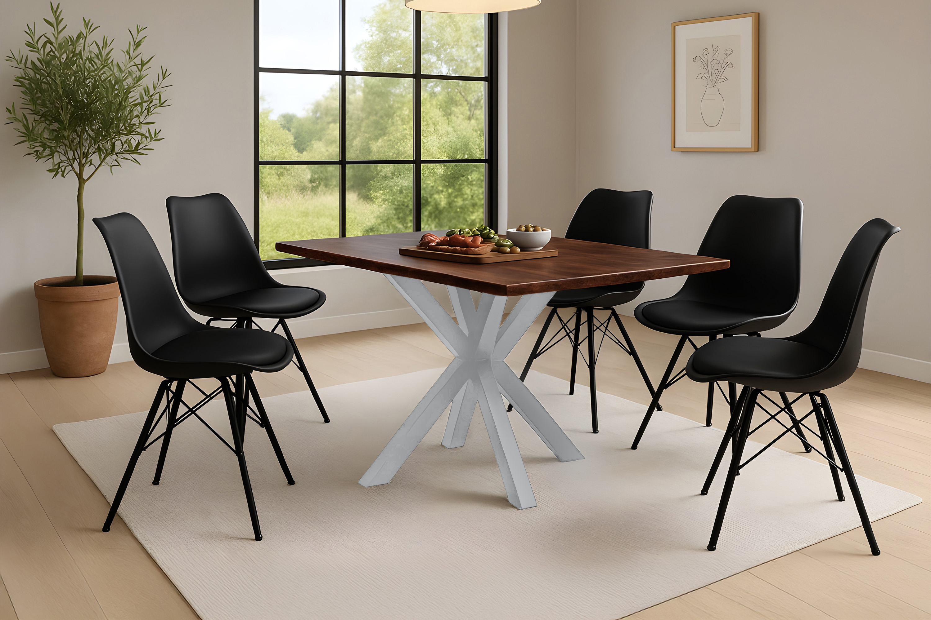 Verleihen Sie Ihrem Esszimmer eine ganz besondere Atmosphäre – mit Roxana, dem Massivholztisch, der Naturverbundenheit und modernes Design auf unvergleichliche Weise vereint. Die kastanienfarbene Tischplatte aus echtem Akazienholz bringt Wärme und Geborgenheit in Ihr Zuhause, während die organisch verlaufende Baumkante jedes Stück zu einem einzigartigen Kunstwerk der Natur macht. Gekrönt wird das Design durch das stabile, silbere Spider-Gestell – ein stilvoller Kontrast, der Roxana zu einem echten Highlight macht.