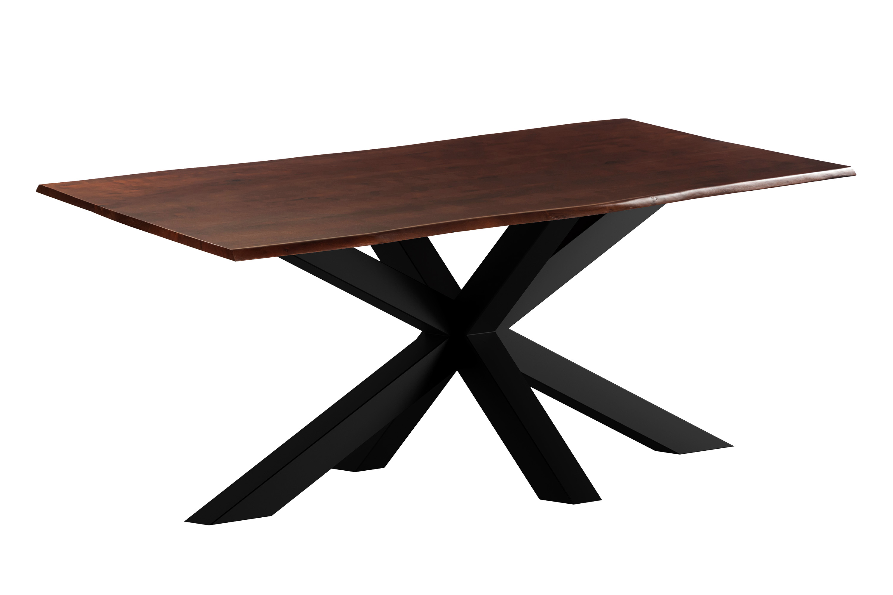 Esstisch Roxana, 200 x 100 cm, Akazienholz massiv + kastanienfarben, Spider-Gestell Schwarz, Echte Baumkante