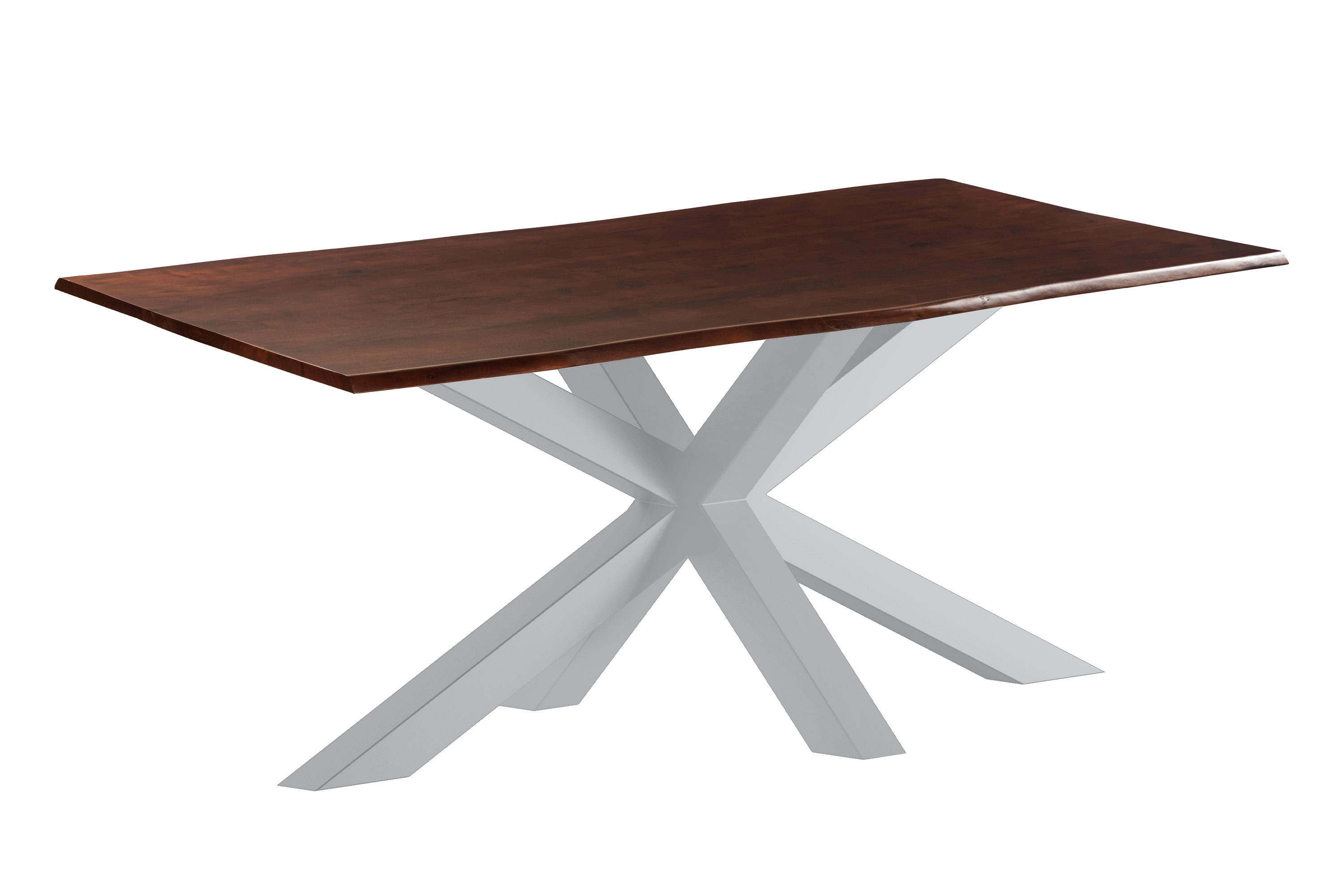 Esstisch Roxana, 200 x 100 cm, Akazienholz massiv + kastanienfarben, Spider-Gestell silber, Echte Baumkante