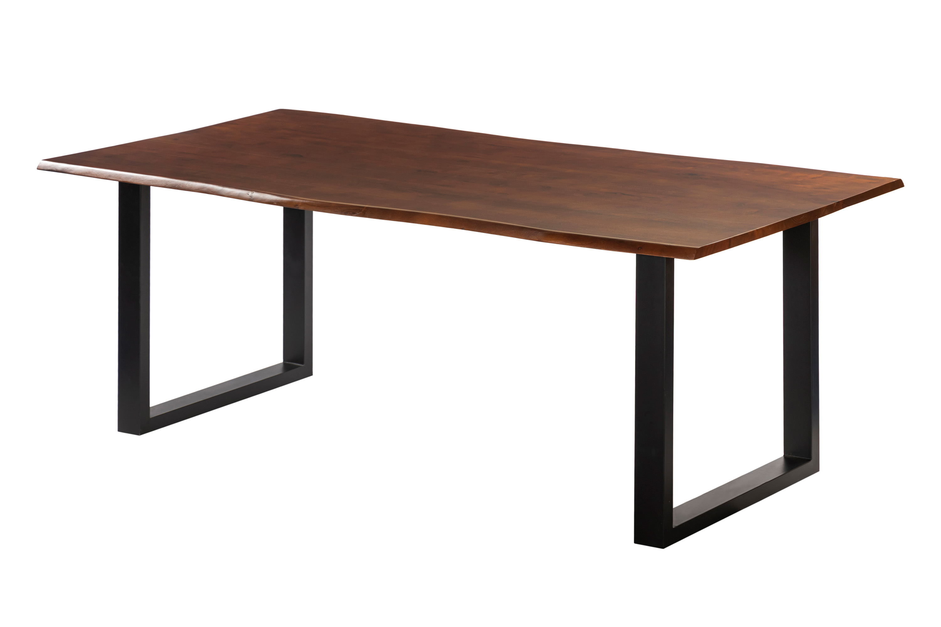 Esstisch Roxana, 200 x 100 cm, Akazienholz massiv + kastanienfarben, U-Gestell Schwarz, Echte Baumkante