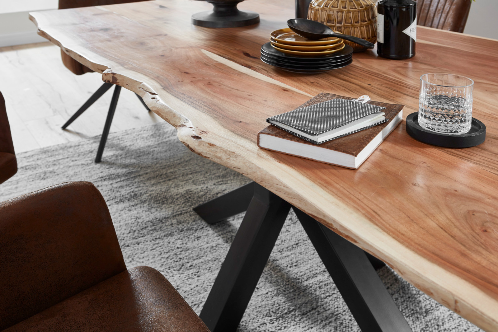 Weiterführende Links zu "Esstisch Baumkante massiv Akazie natur 180 cm Spider-Gestell schwarz QUINCY"