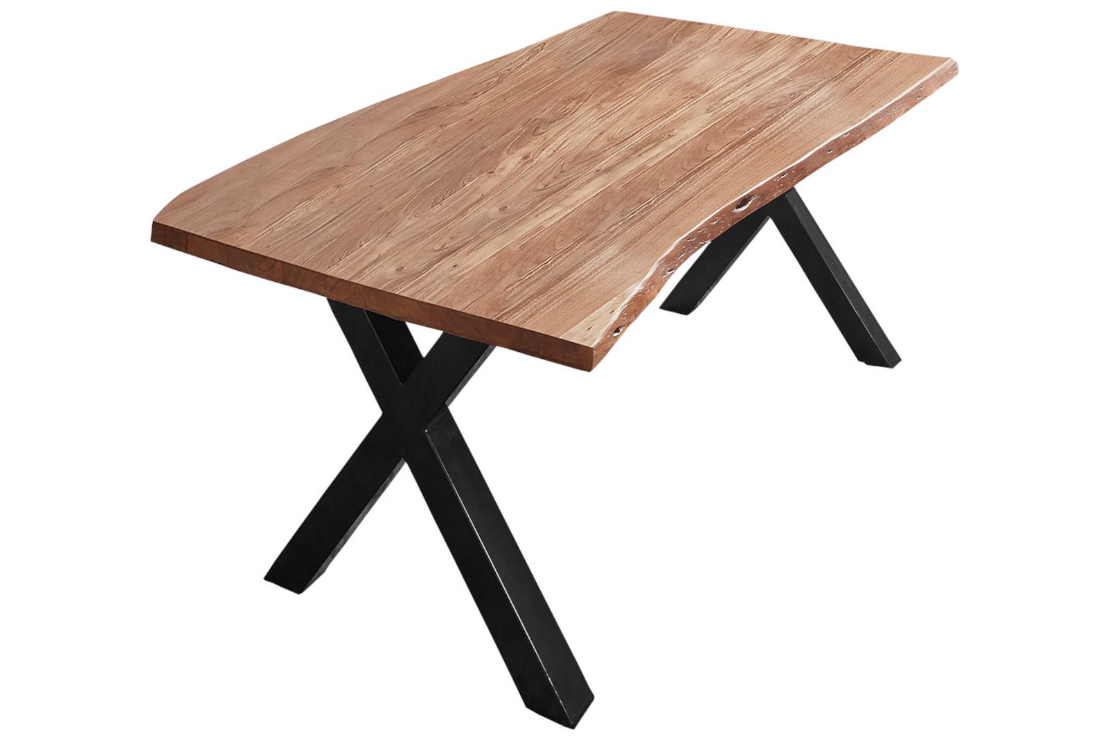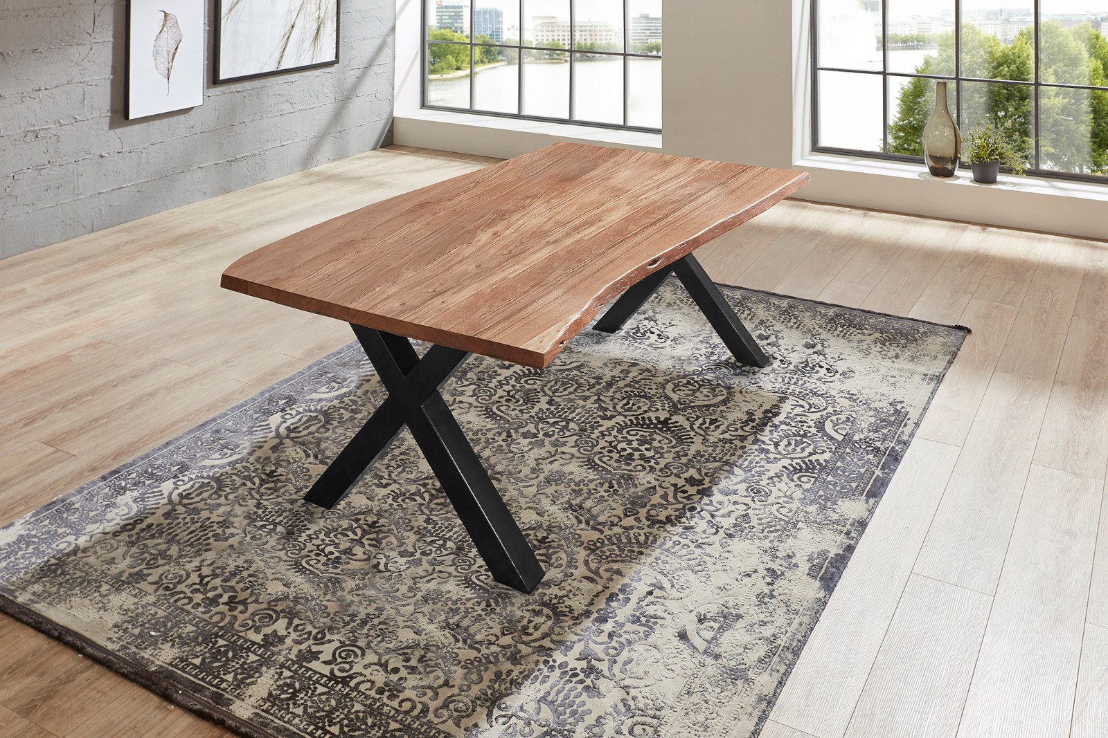 Hochwertiger Esszimmertisch Xaver in der Größe 200x100cm – Akazienholz massiv & naturfarben, echte Baumkante, X-Gestell schwarz