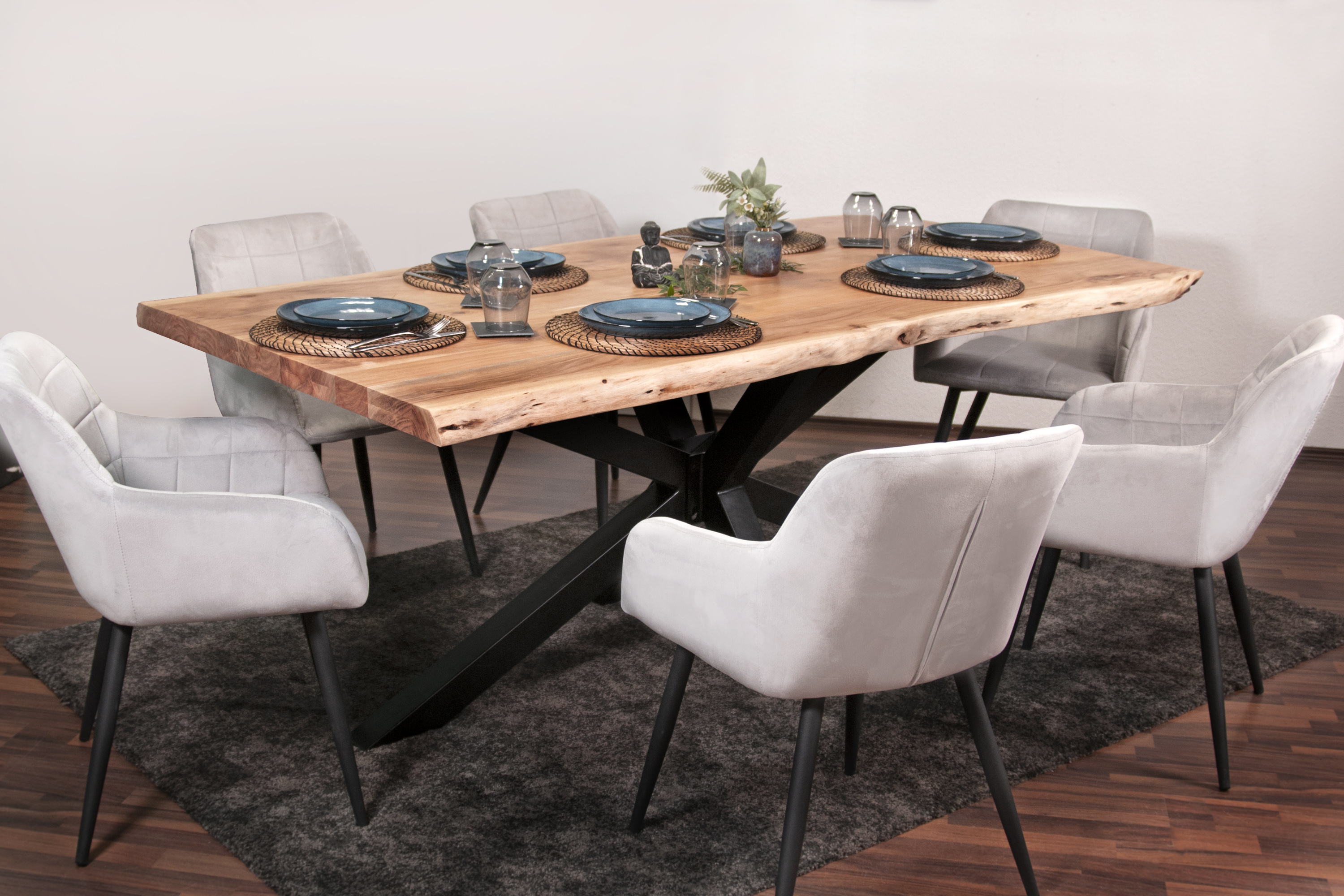 Weiterführende Links zu "Esstisch Baumkante massiv Akazie Natur 200 x 110 Spider-Gestell schwarz CALI"