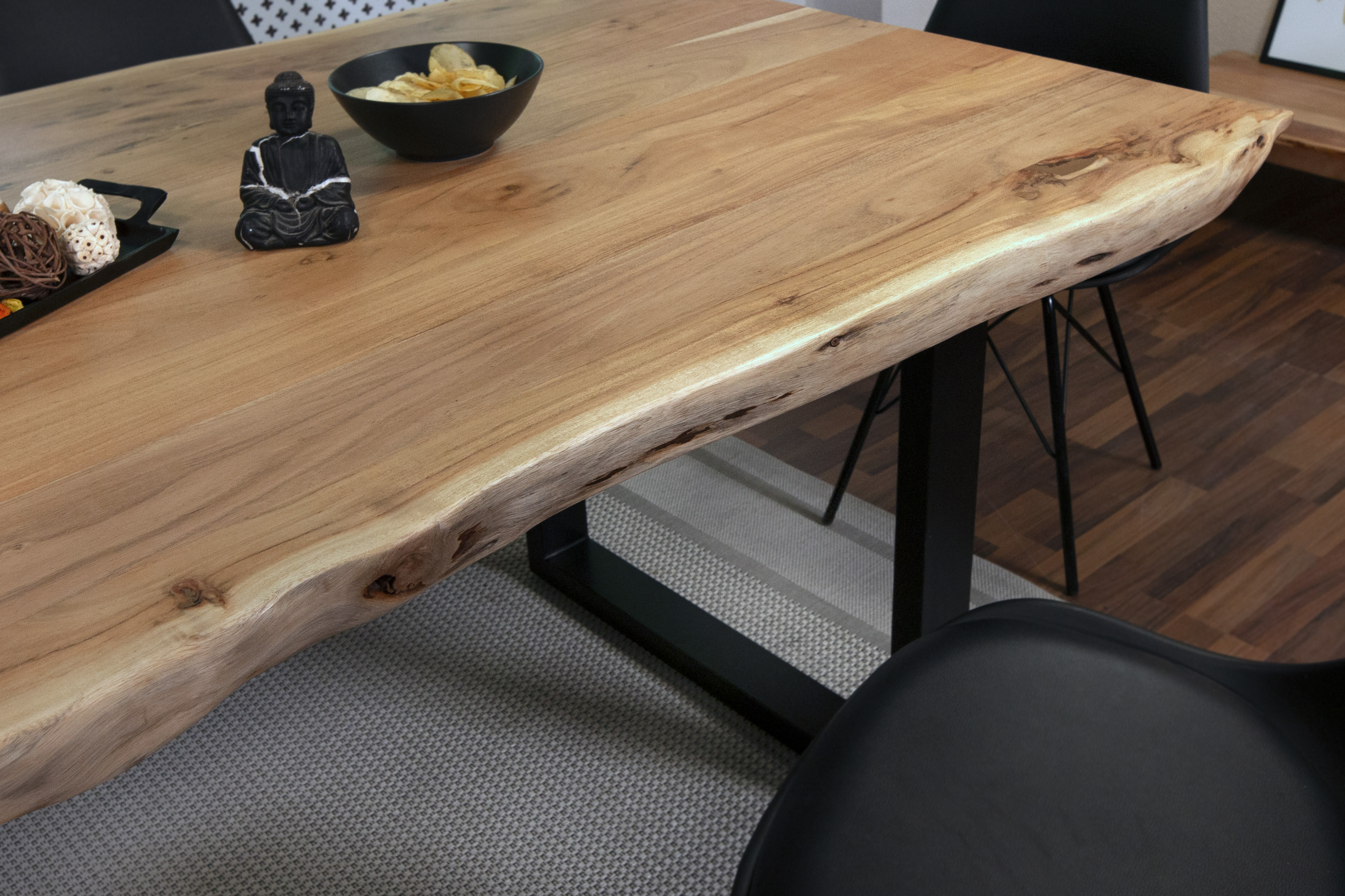 Produktinformationen "Esstisch Baumkante massiv Akazie Natur 220 x 110 U-Gestell schwarz CALI"