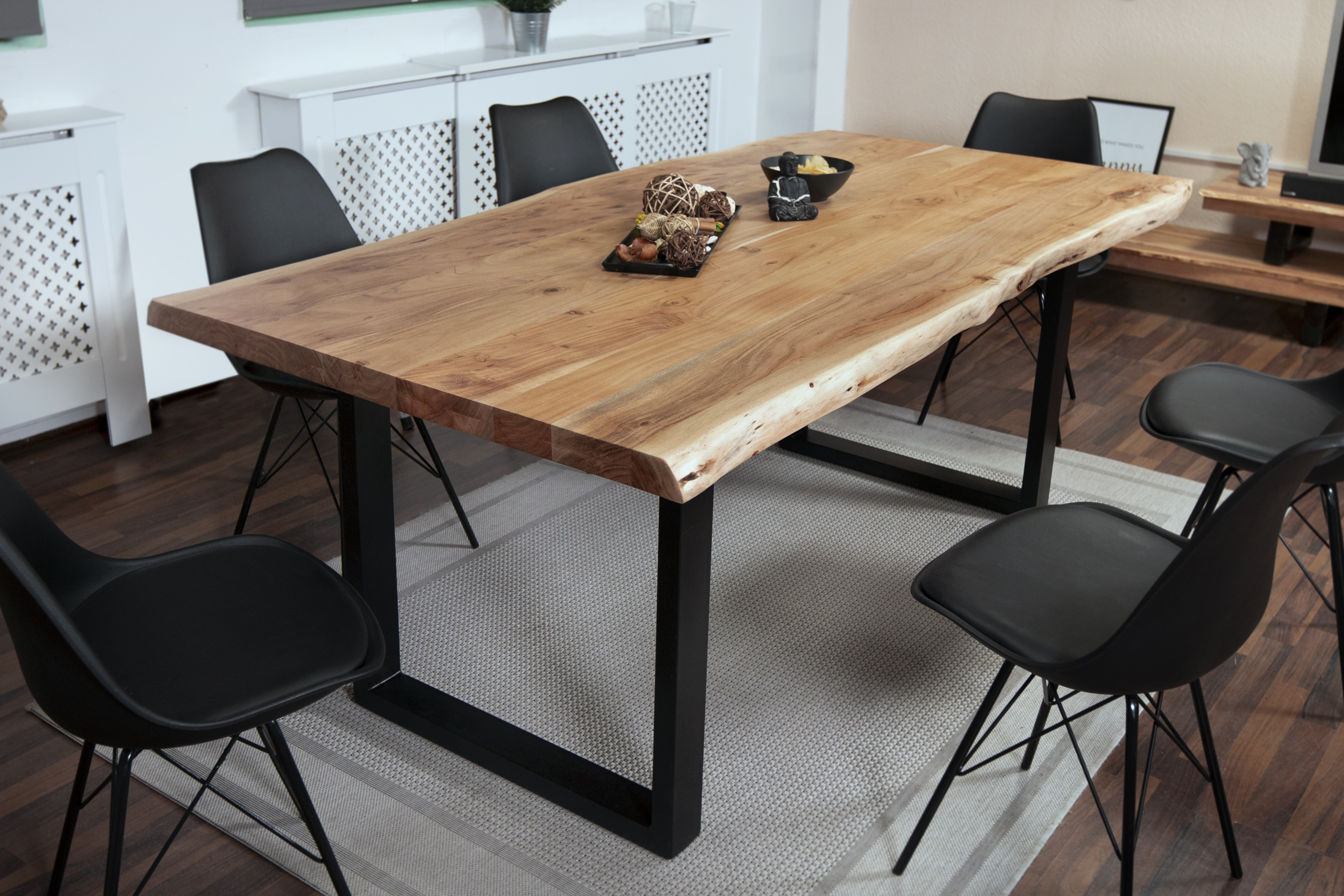 Hochwertiges Unikat – Der Esstisch besteht aus massiven und robusten Akazienholz. Aufgrund der einzigartigen Maserung erhalten Sie ein Unikat mit individuellem Charakter. Das U-förmige Gestell sorgt für einen gelungenen Kontrast, welcher dem Massivholztisch einen Hauch von industriellem Look verleiht.