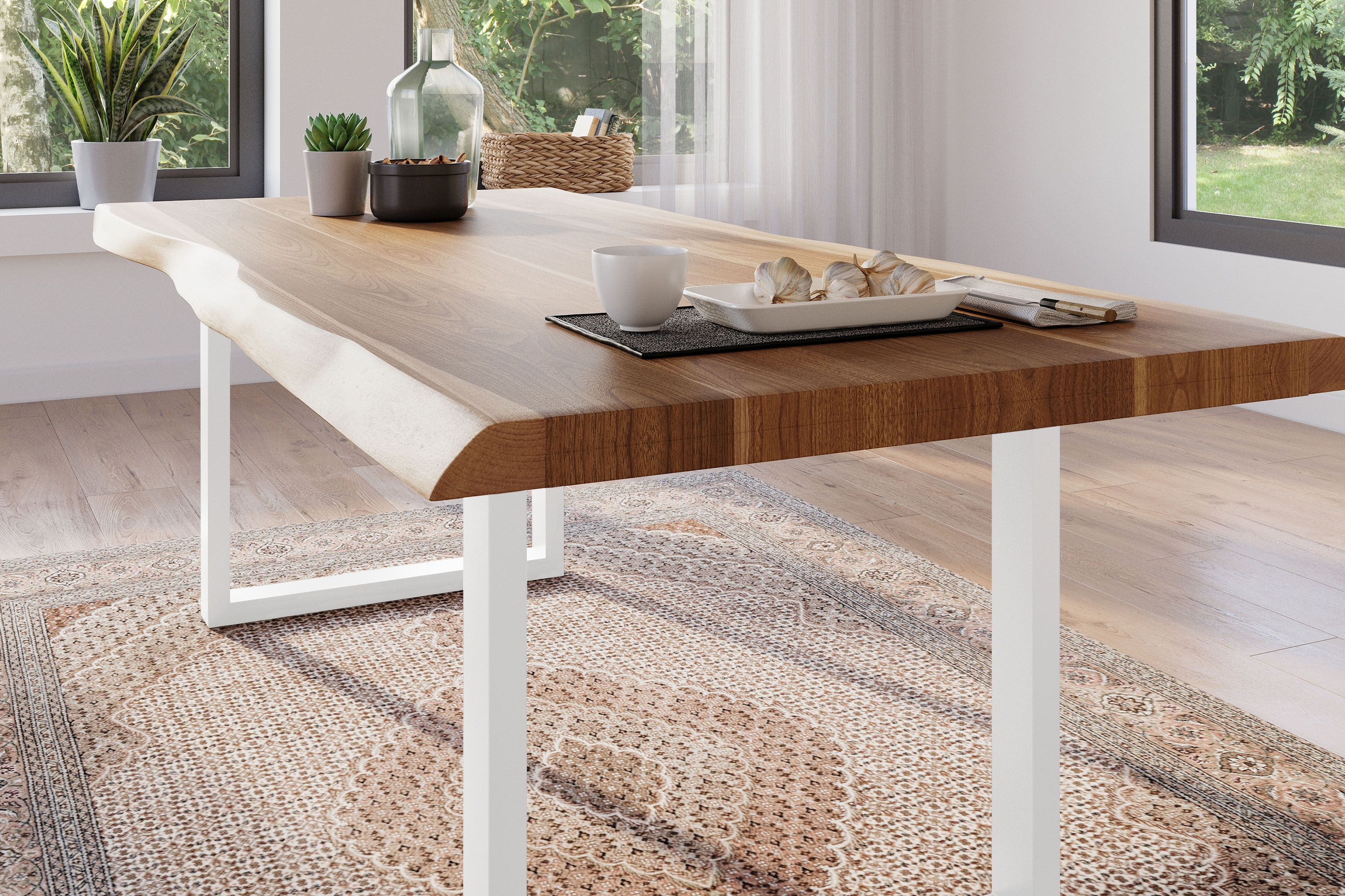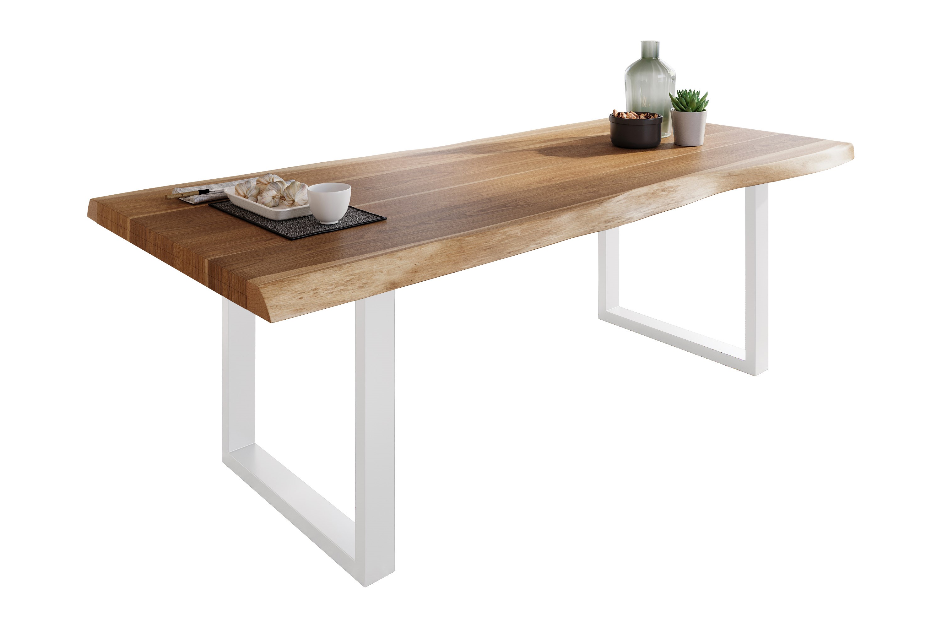 Produktinformationen "Esstisch Baumkante massiv Akazie Natur 220 x 110 U-Gestell weiß ATLAS"