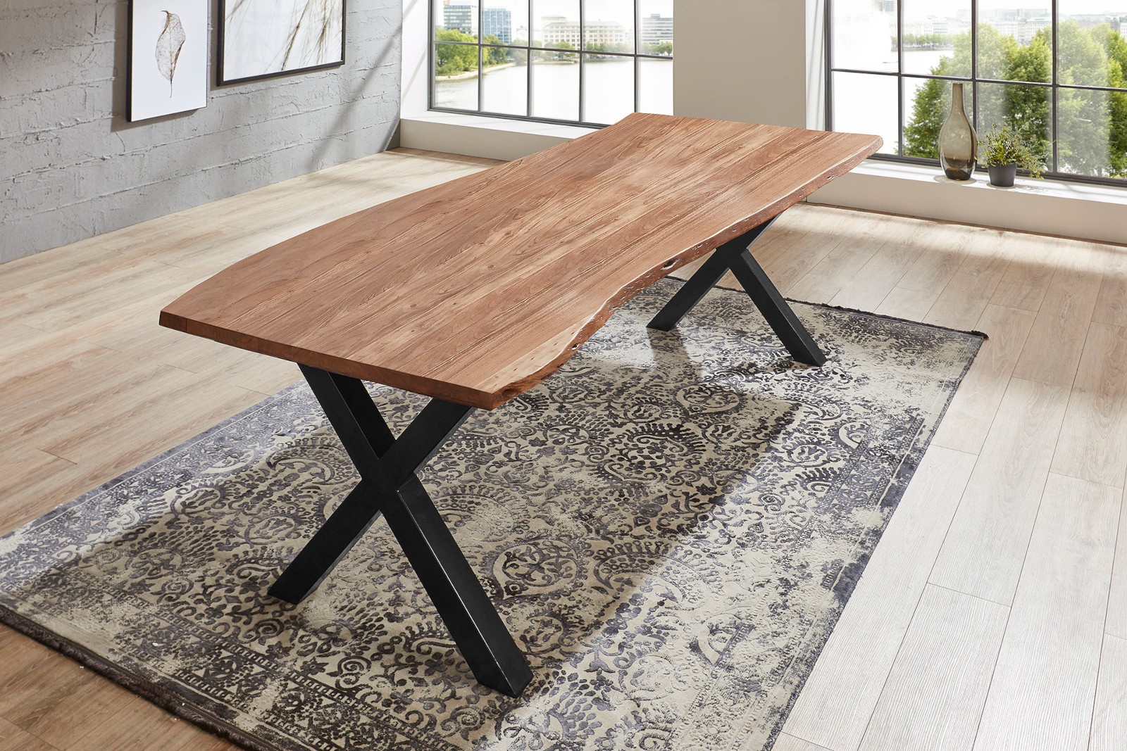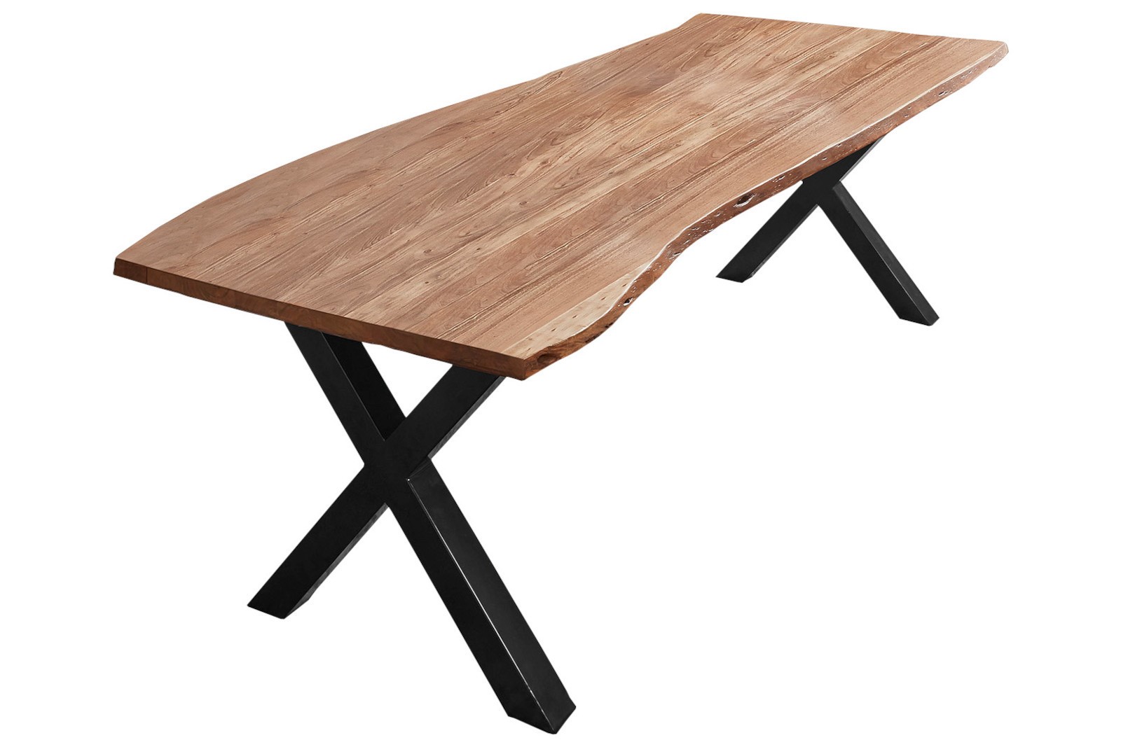 Hochwertiger Esszimmertisch Xaver in der Größe 240x100cm – Akazienholz massiv & naturfarben, echte Baumkante, X-Gestell schwarz