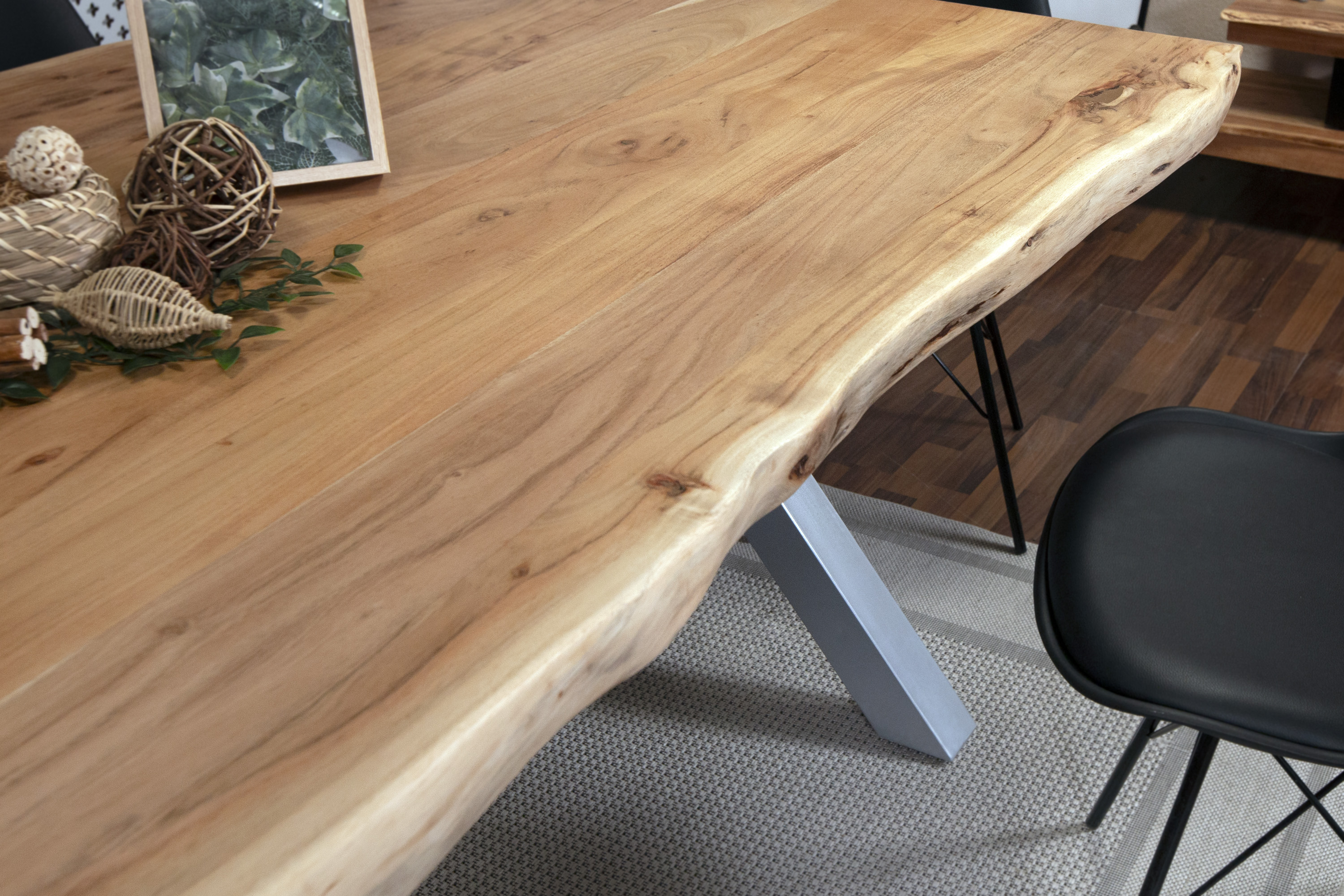 Esstisch Baumkante massiv Akazie natur 300 x 100 X-Gestell schwarz XAVER