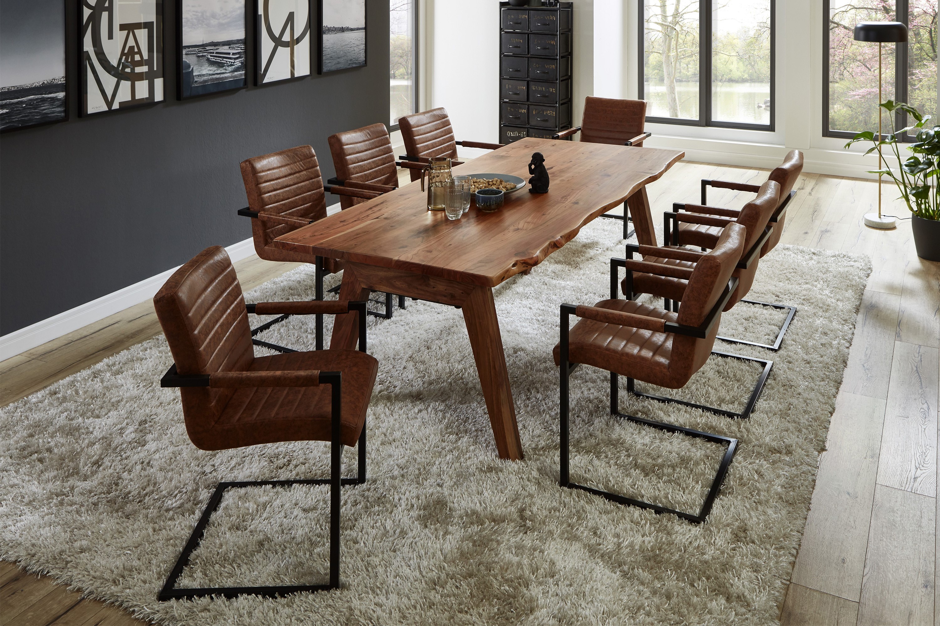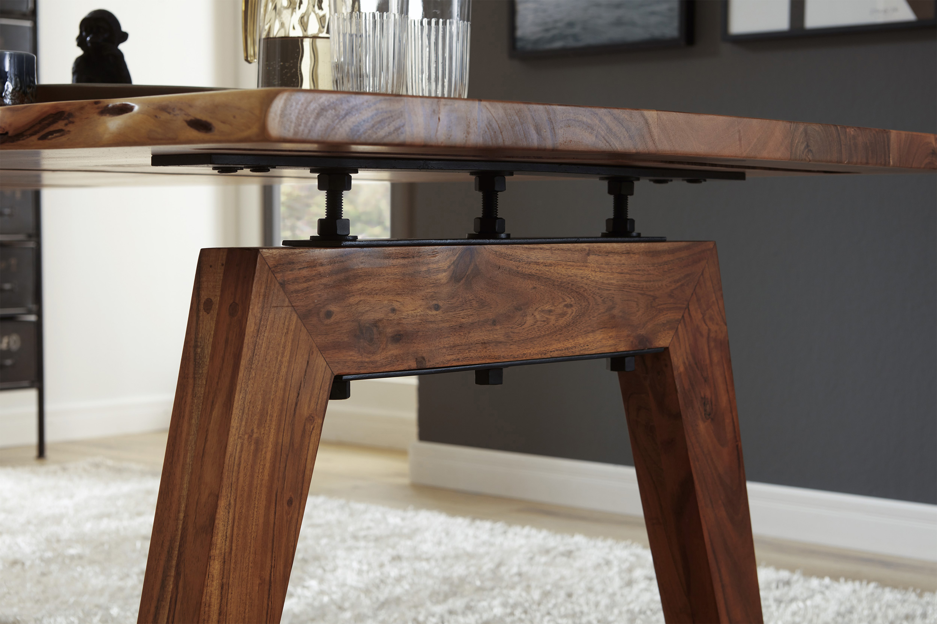 Kombinierbar – Der edle Baumtisch lässt sich problemlos mit verschiedenen Möbelstücken und Einrichtungsstilen kombinieren. Massivholzmöbel aus Akazienholz gehören mit ihrer abwechslungsreichen und eleganten Maserung zu den zeitlos schönen Möbeln, die niemals aus der Mode kommen.