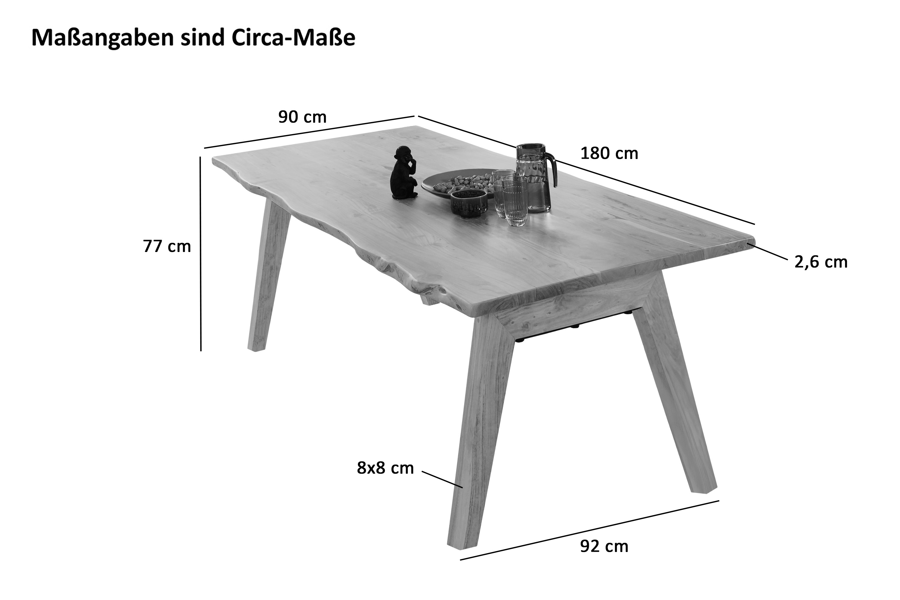 Esstisch Baumkante massiv Akazie nuss 180 x 90 A-Holzgestell nussbaumfarben NELE