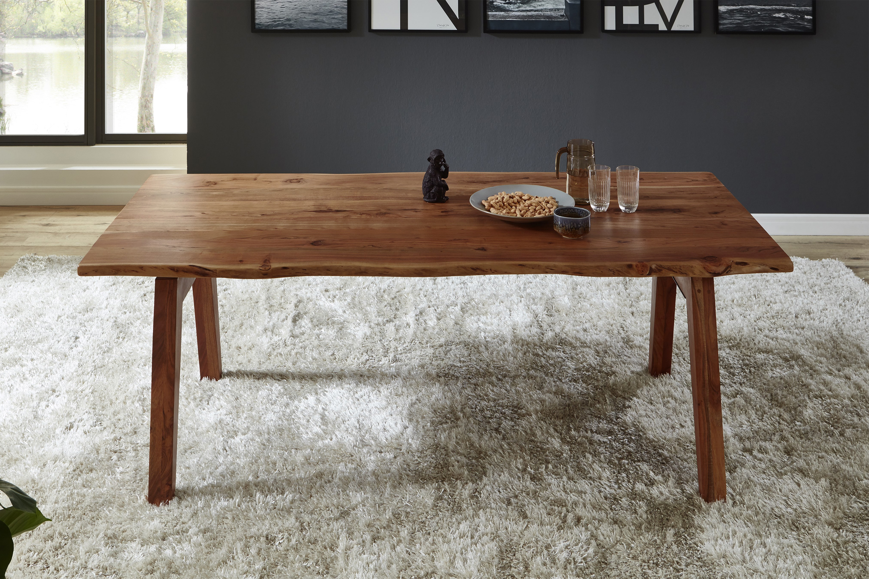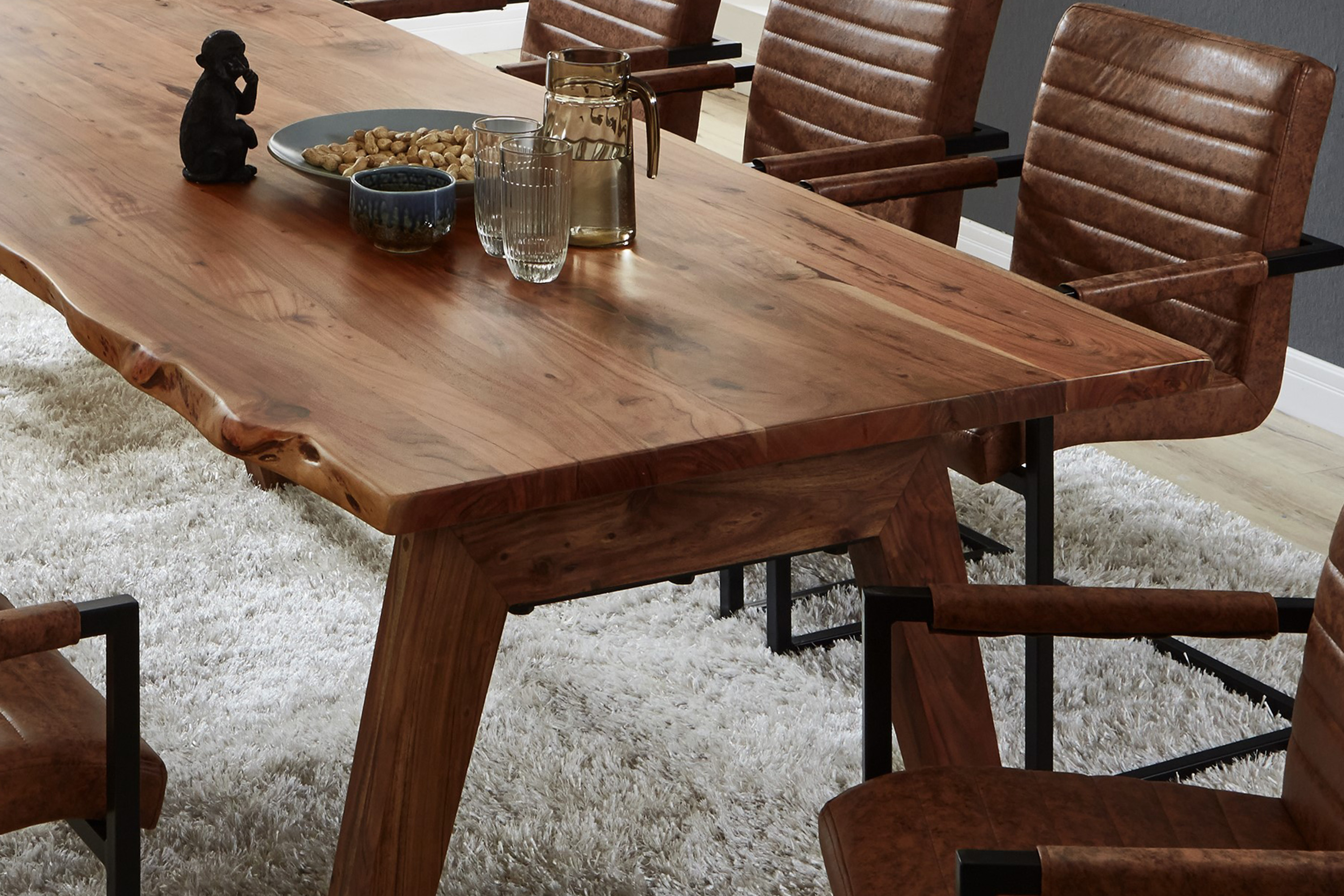 Kombinierbar – Der edle Baumtisch lässt sich problemlos mit verschiedenen Möbelstücken und Einrichtungsstilen kombinieren. Massivholzmöbel aus Akazienholz gehören mit ihrer abwechslungsreichen und eleganten Maserung zu den zeitlos schönen Möbeln, die niemals aus der Mode kommen.
