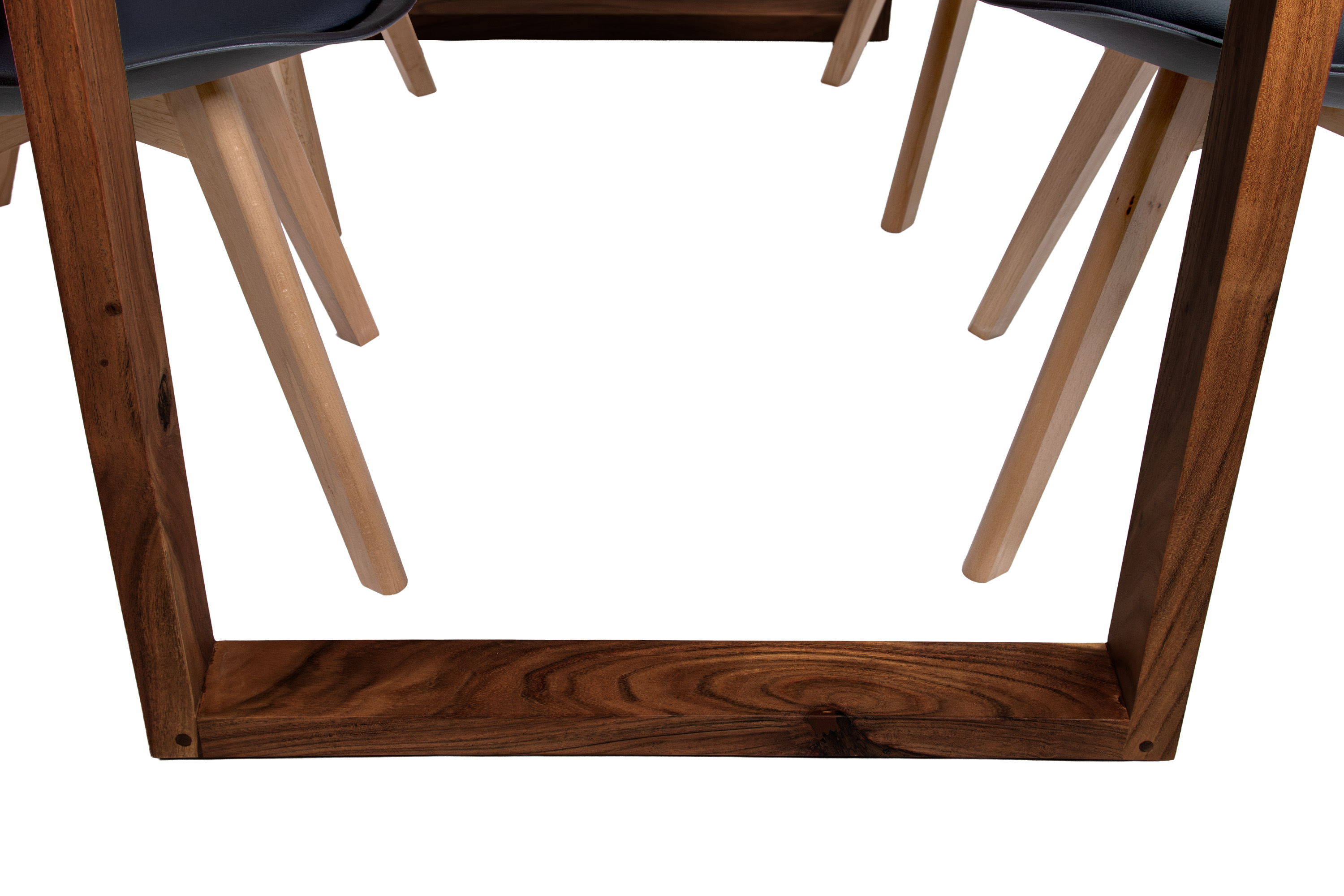 Die Tischplatte aus massivem Akazienholz begeistert durch ihre feste Struktur, feine Maserung und warme, nussbaumfarbene Lackierung. Sie bringt ein Gefühl von Erdung und Beständigkeit in Ihre Räume. Mit 26 mm Plattenstärke ist Graz robust gebaut und dennoch elegant in der Wirkung – ideal für alle, die Ästhetik und Funktion in Einklang bringen möchten.