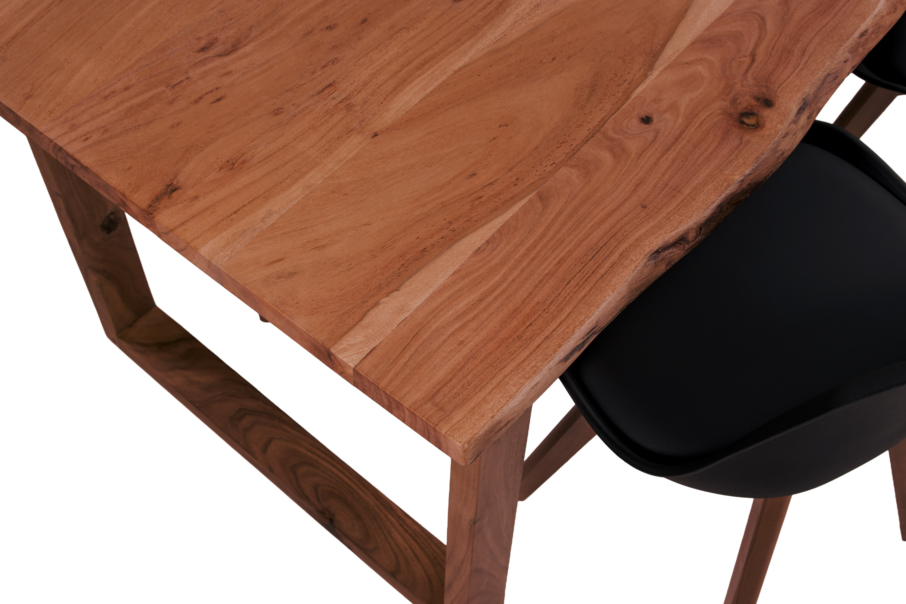 Baumkantentisch Graz, 160 x 85 cm, Akazienholz massiv + nussbaumfarben, U-Gestell Massivholz, Echte Baumkante