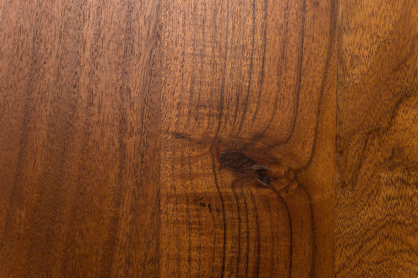 Natürliche Oberfläche – Der Esszimmertisch ist geschliffen und nussbaumfarben lackiert, ansonsten aber völlig naturbelassen. Dadurch kommt die schöne Maserung des Akazienholzes zur Geltung.