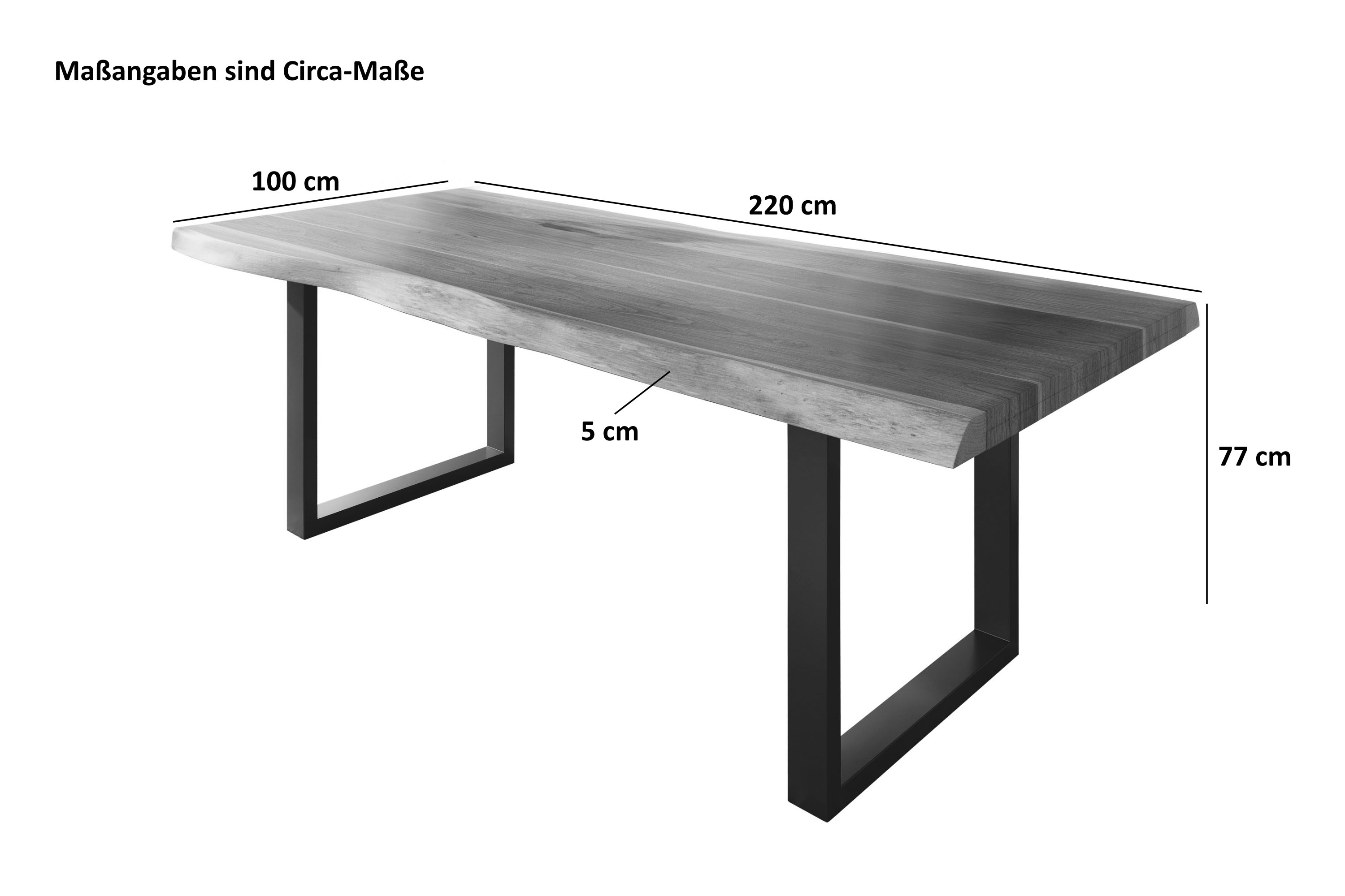 Produktinformationen "Esstisch Baumkante massiv Akazie Nussbaum 220 x 110 U-Gestell schwarz ATLAS"