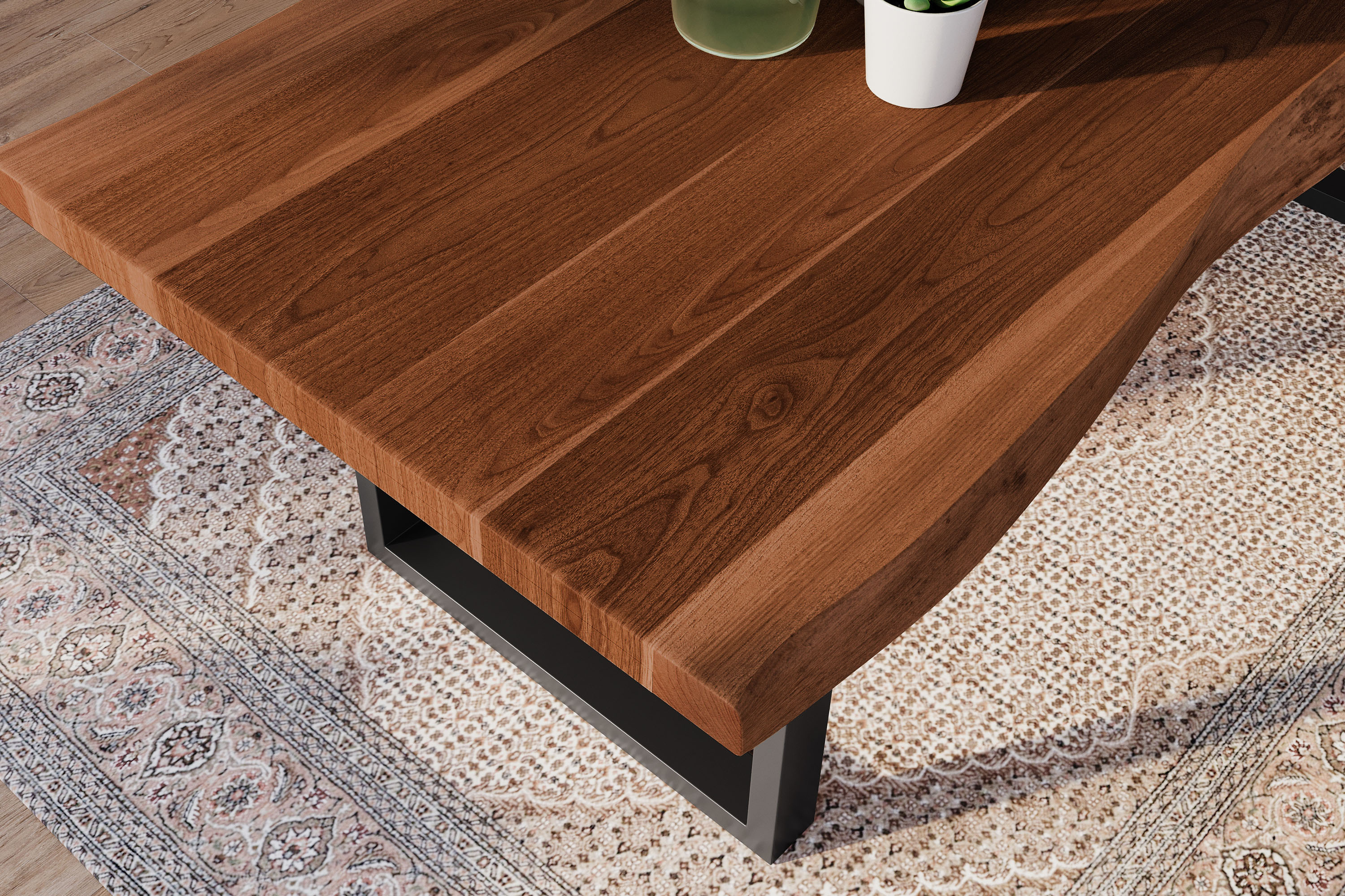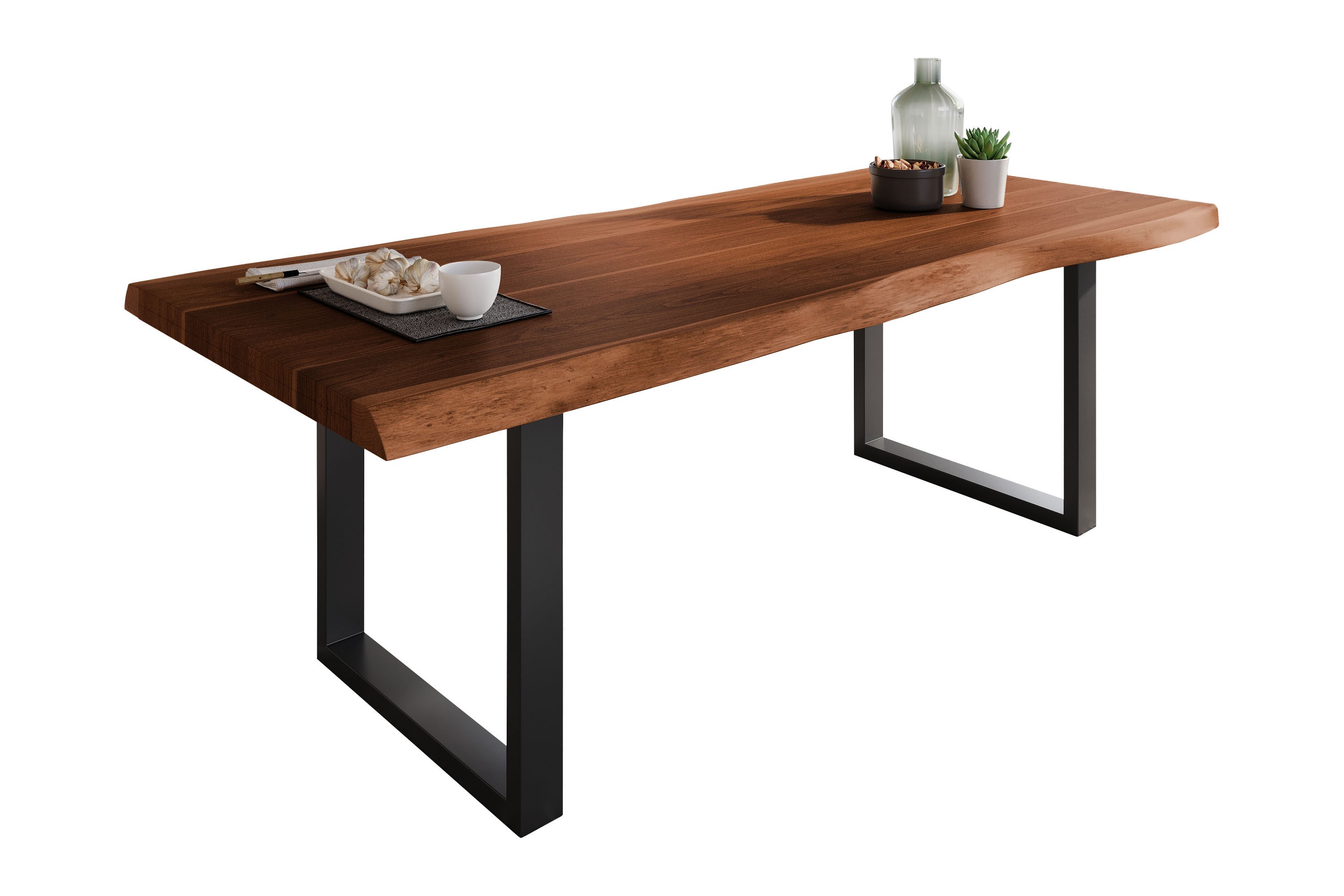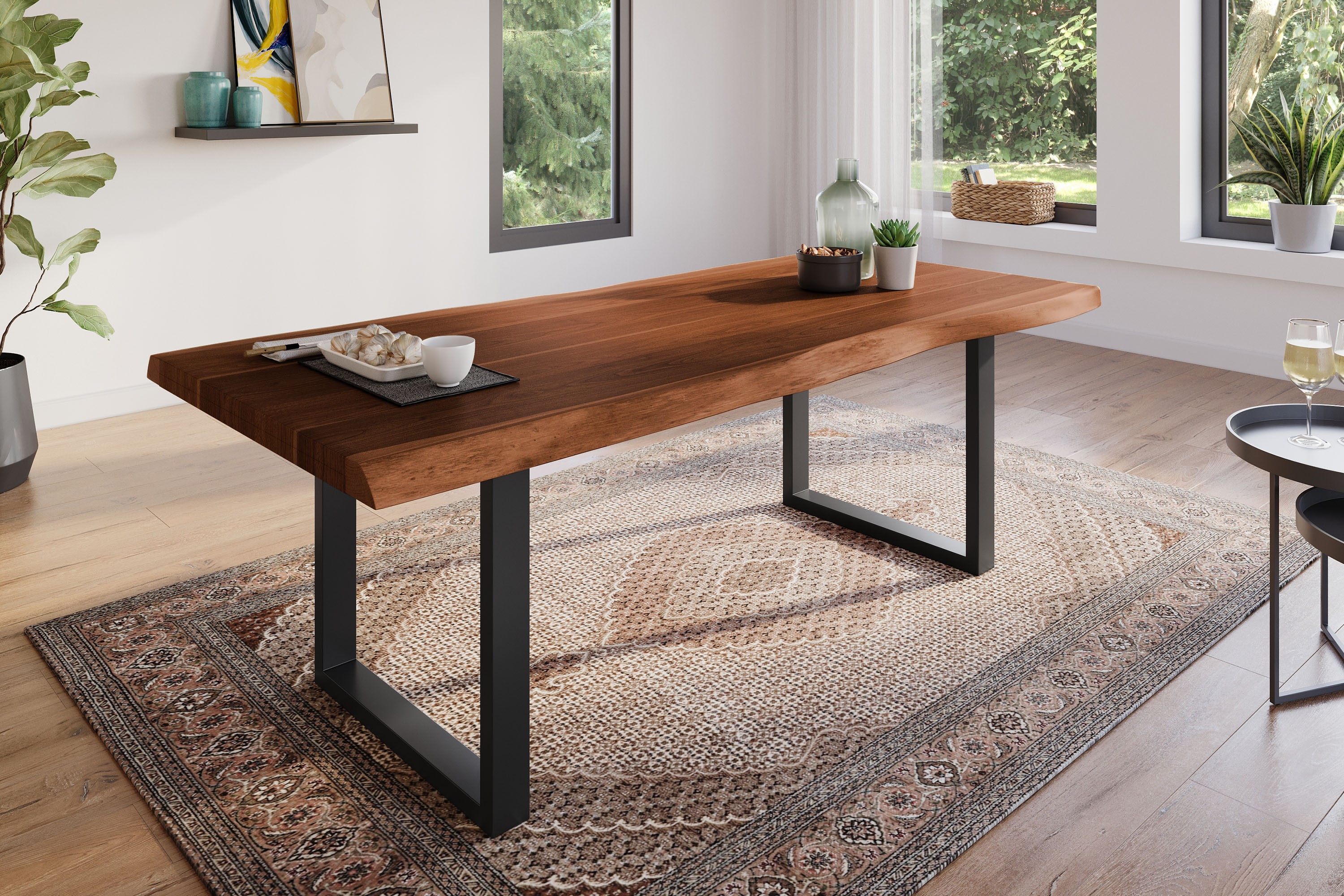 Esszimmertisch Atlas, 220 x 110 cm, massives Akazienholz nussbaumfarben, echte Baumkante, U-Gestell aus Metall Schwarz