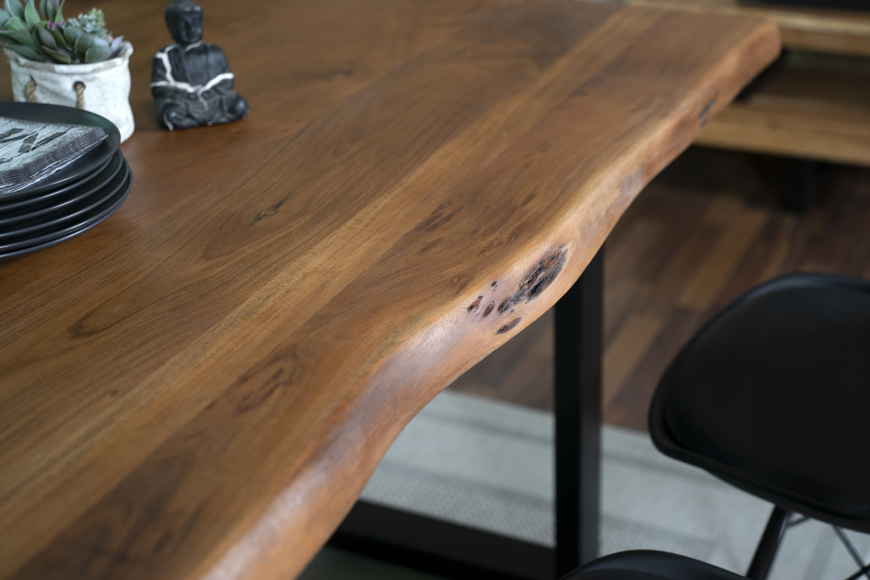 Hochwertiges Unikat – Der Esstisch besteht aus massiven und robusten Akazienholz. Aufgrund der einzigartigen Maserung erhalten Sie ein Unikat mit individuellem Charakter. Das U-förmige Gestell sorgt für einen gelungenen Kontrast, welcher dem Massivholztisch einen Hauch von industriellem Look verleiht.