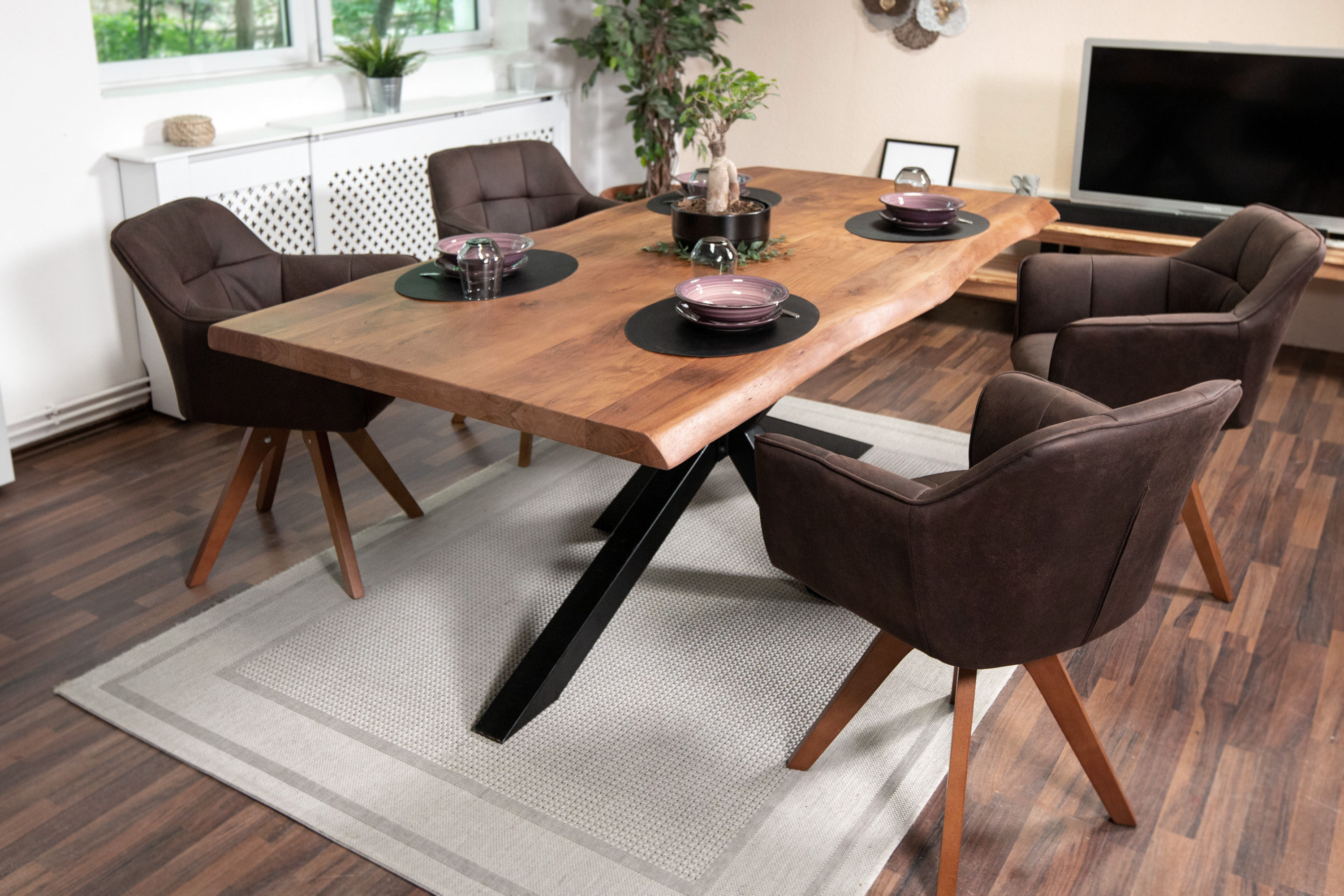 Esstisch Baumkante massiv Akazie Nuss 300 x 120 X-Gestell schwarz CALI